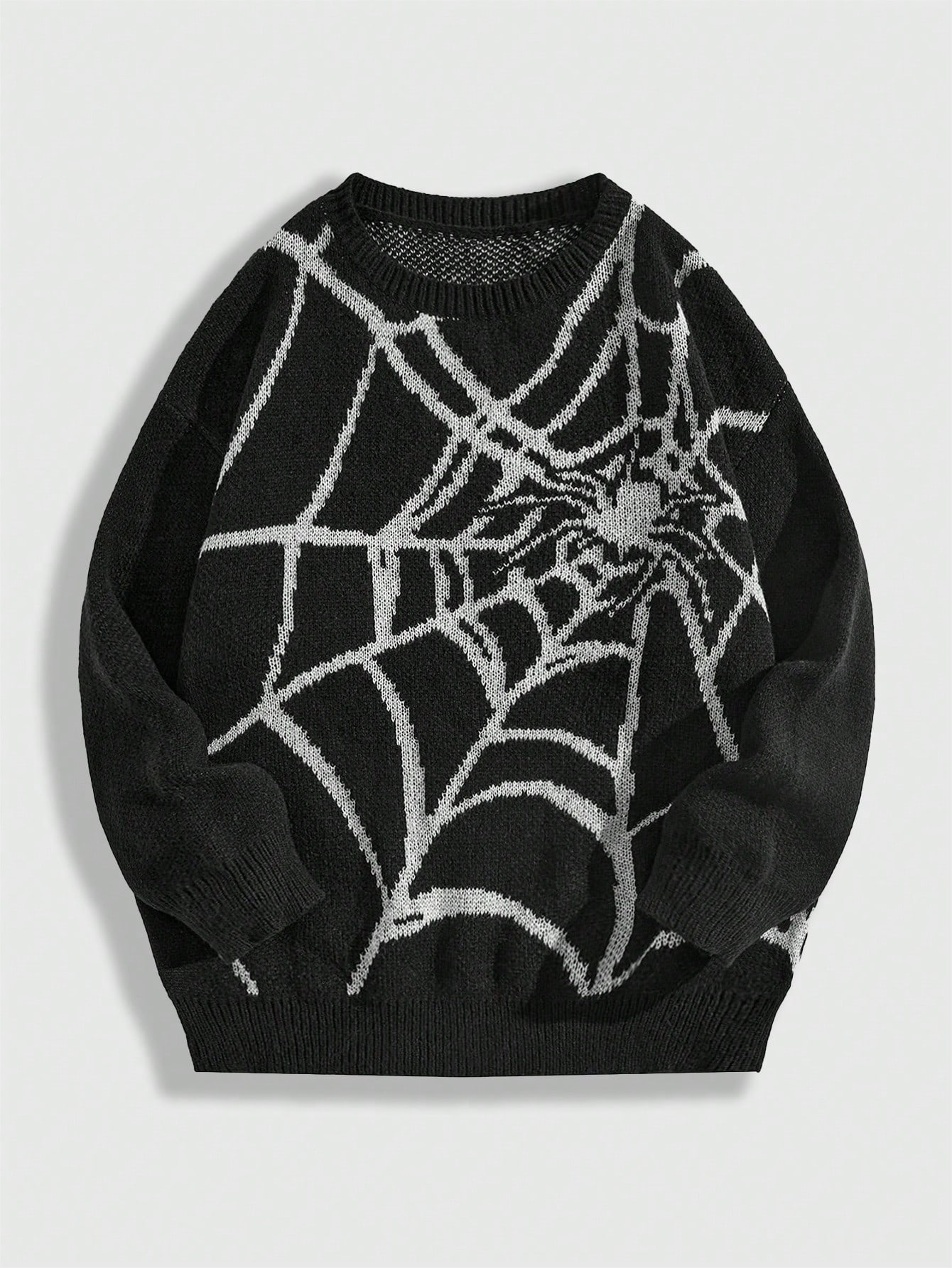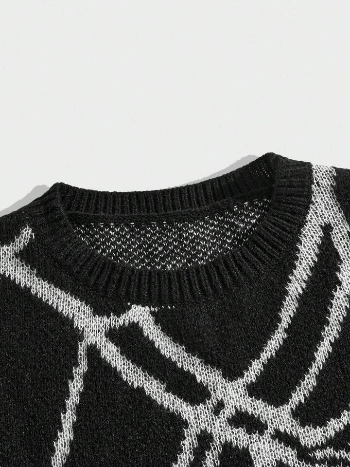 Maglione casual a girocollo a maniche lunghe con motivo a ragnatela jacquard, per ragazzi adolescenti, autunno/inverno