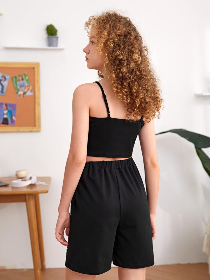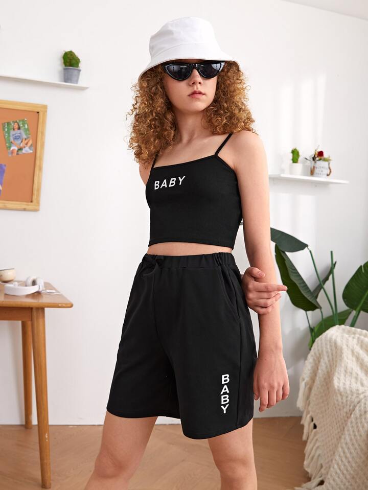 Set shorts & top con bretelle sottili corte grafico con lettera