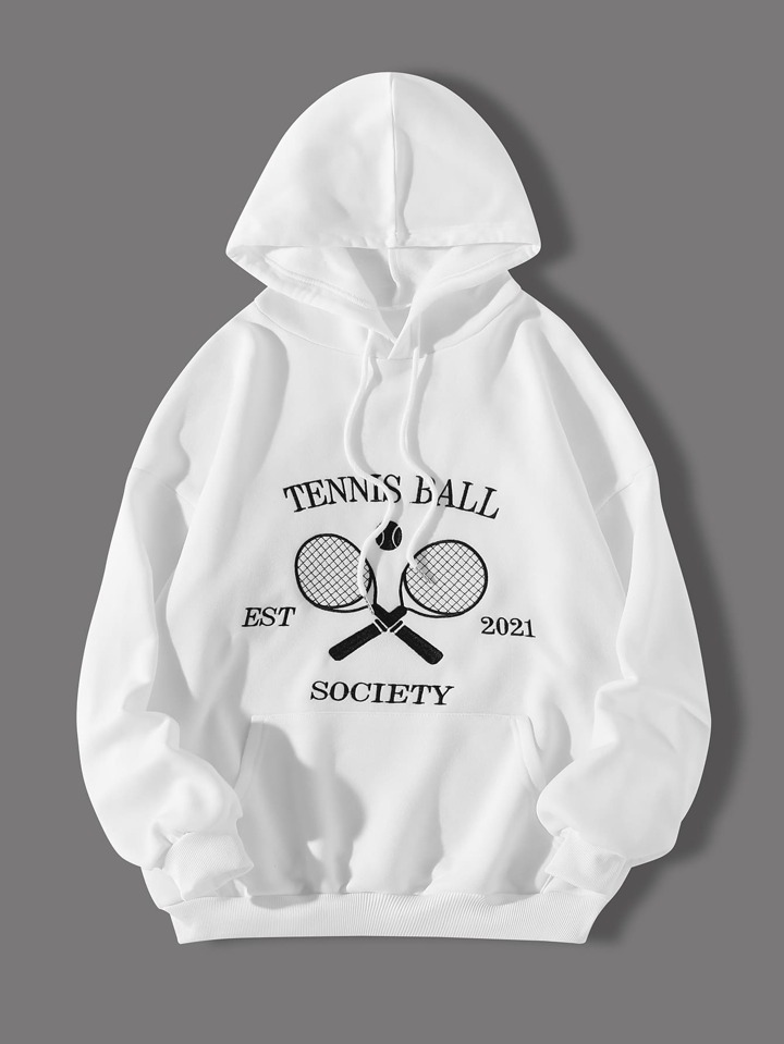 Felpa con cappuccio Racket da tennis & con ricamo lettera spalle cadenti