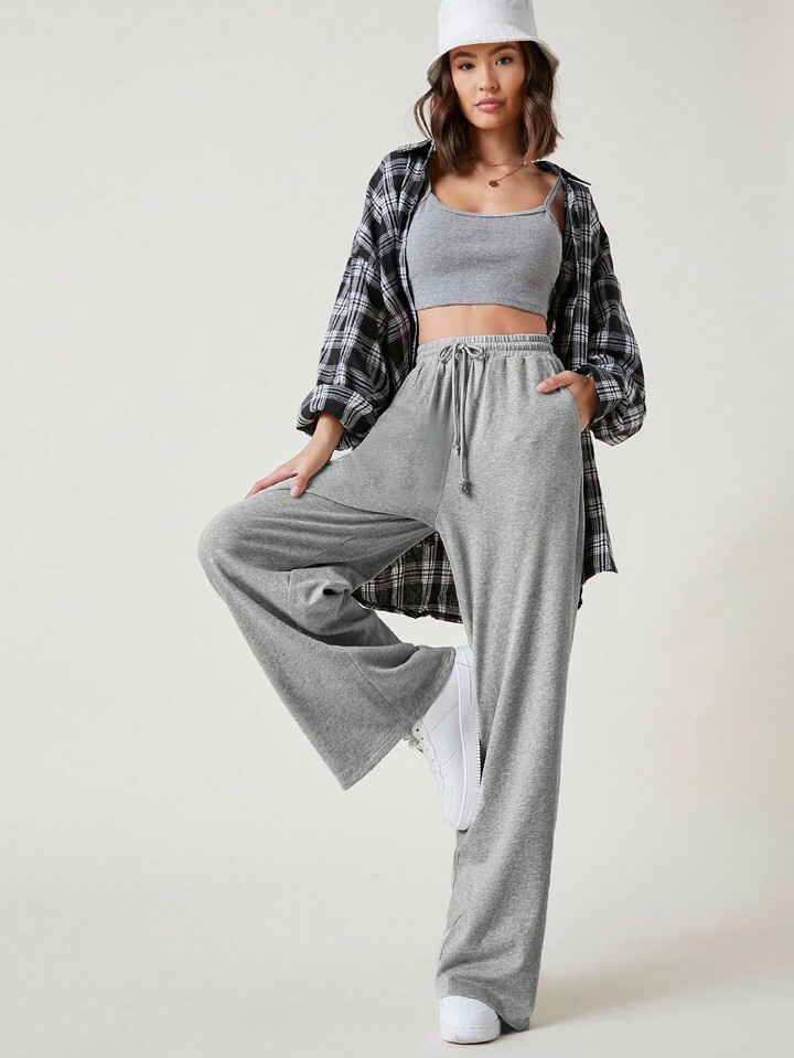 Pantaloni in felpa di spugna a vita alta con coulisse