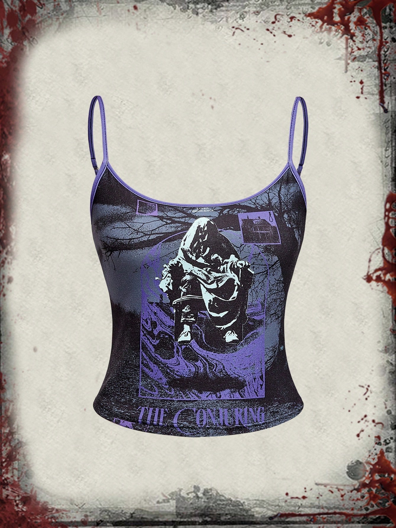 The Conjuring X ROMWE Top canotta da donna con colori a contrasto, ispirato al film orrore