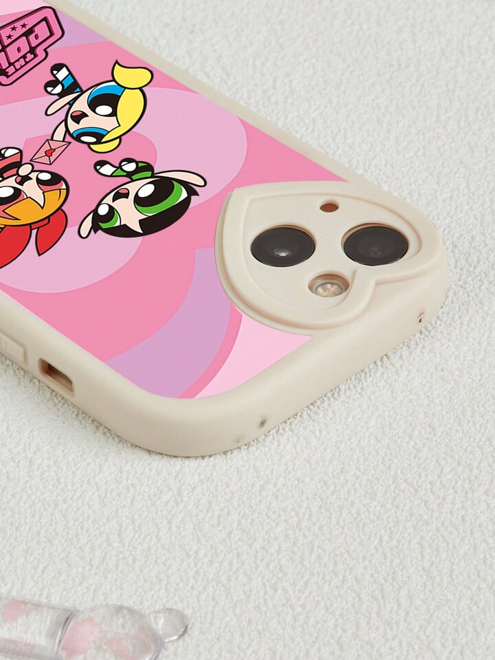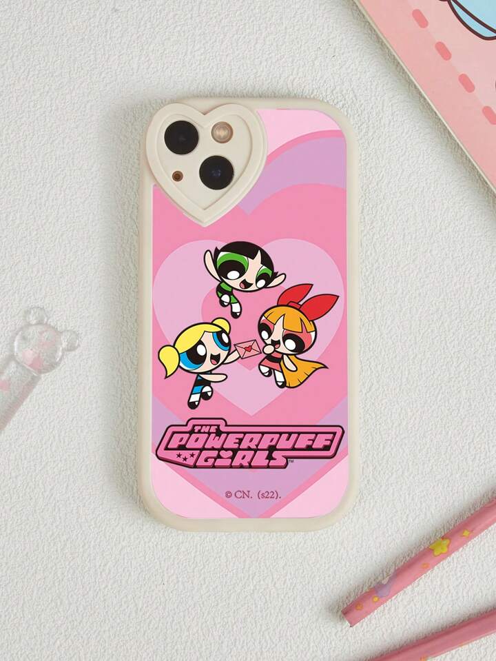 The Powerpuff Girls | ROMWE 1 pezzo Custodia protettiva per telefono di colore bianco con design a cuore e ragazza dagli occhi grandi, compatibile con iPhone e altri modelli