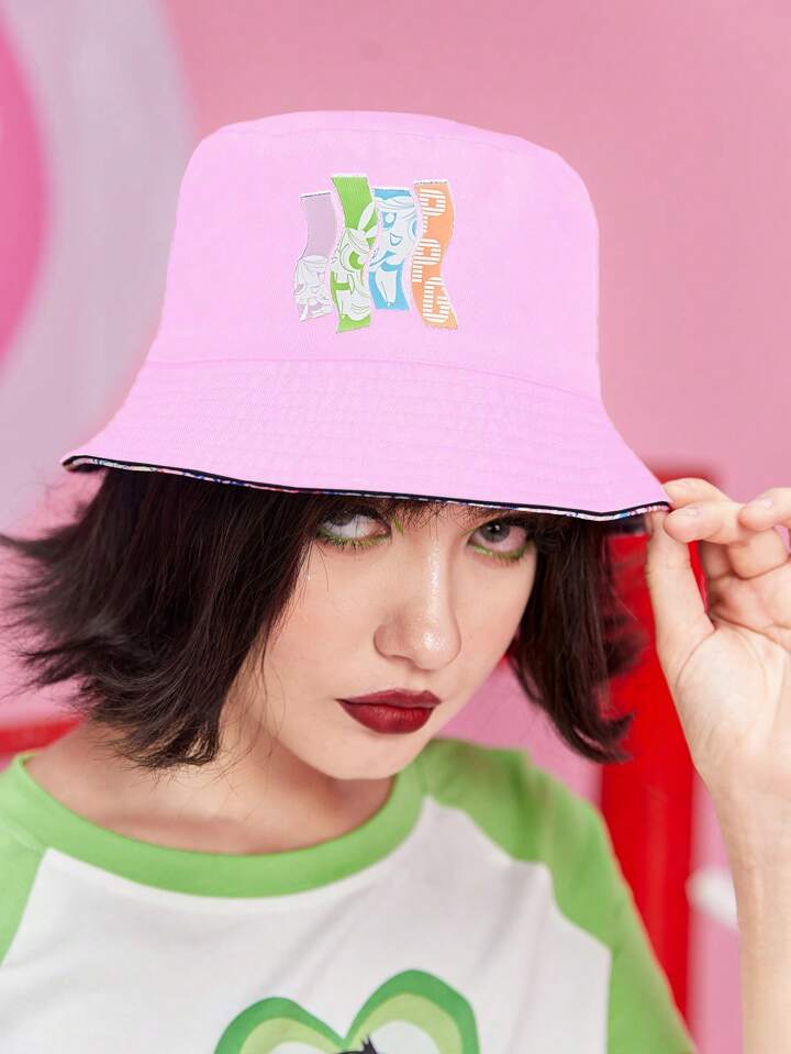 The Powerpuff Girls | ROMWE Donna 1 pezzo Cappello da pescatore con grafica lettera bifacciale alla moda