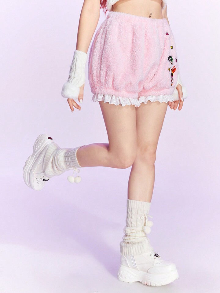 The Powerpuff Girls | ROMWE Shorts con ricamo fumetto schiffy con volant teddy