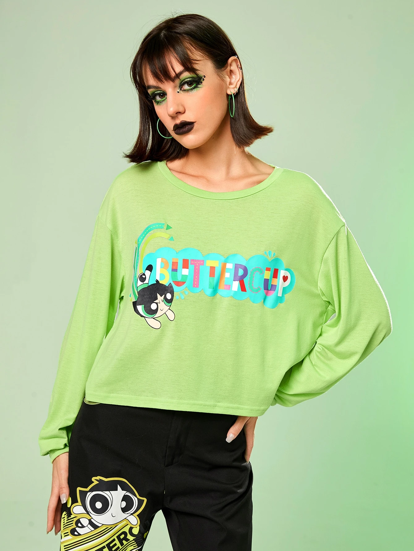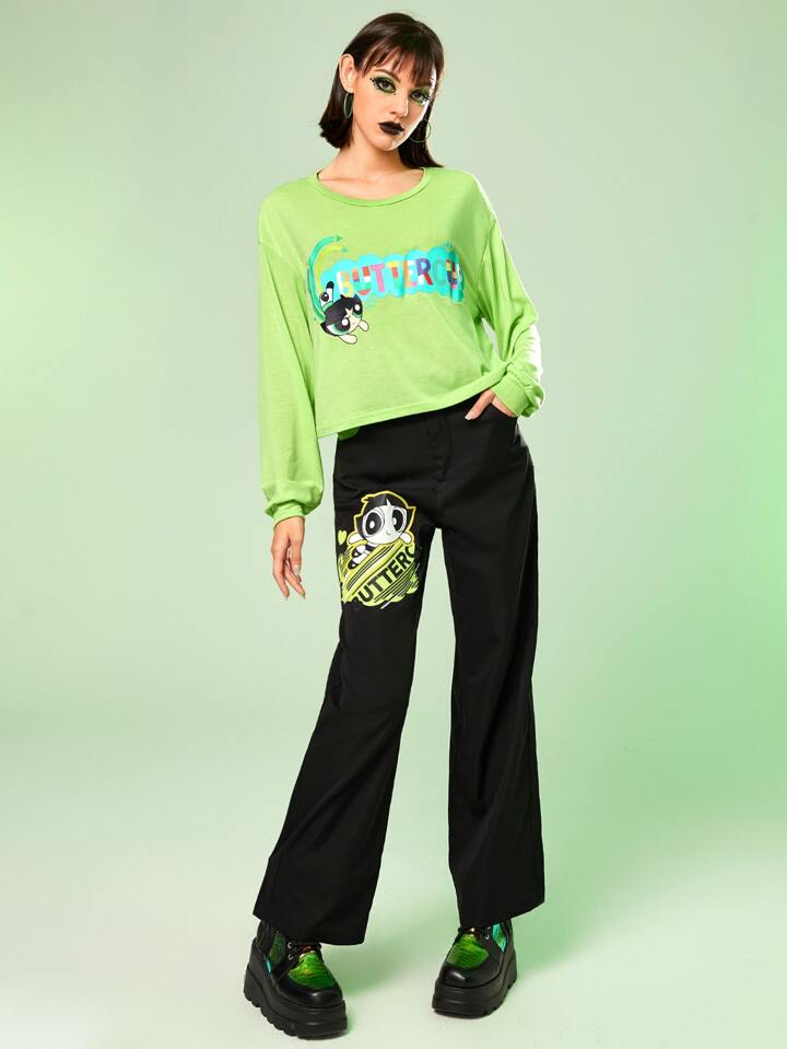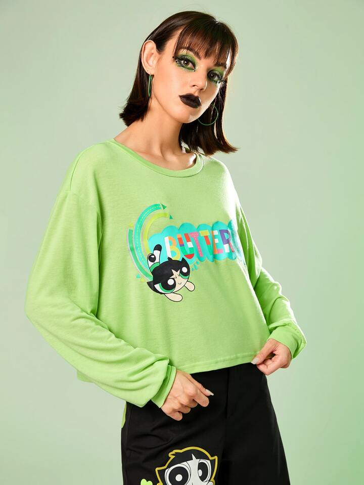 The Powerpuff Girls | ROMWE Maglietta con spalla goccia lettere con grafica fumetto