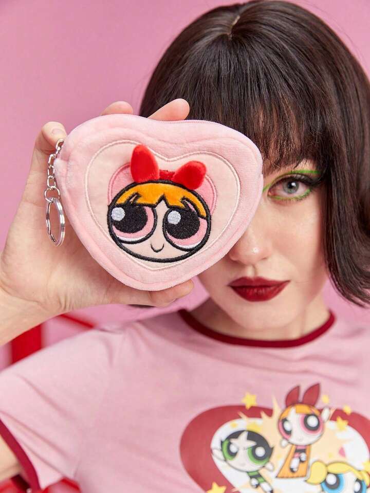 The Powerpuff Girls | ROMWE Portamonete ricamato a forma di cuore rosa