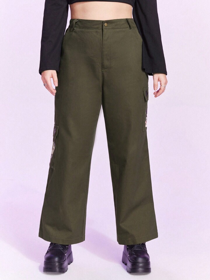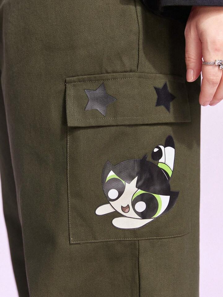 The Powerpuff Girls | ROMWE Taglie Forti Pantaloni cargo con grafica fumetto tasca laterale con patta