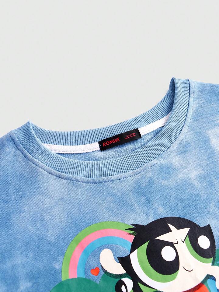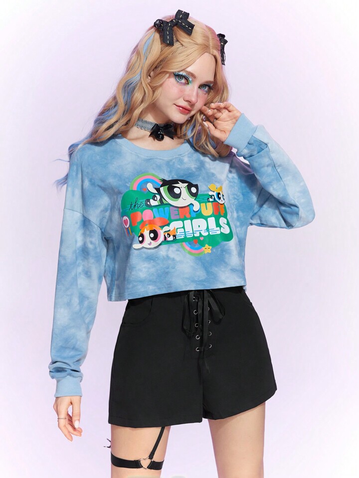 The Powerpuff Girls | ROMWE Felpa corta tie dye con grafica fumetto