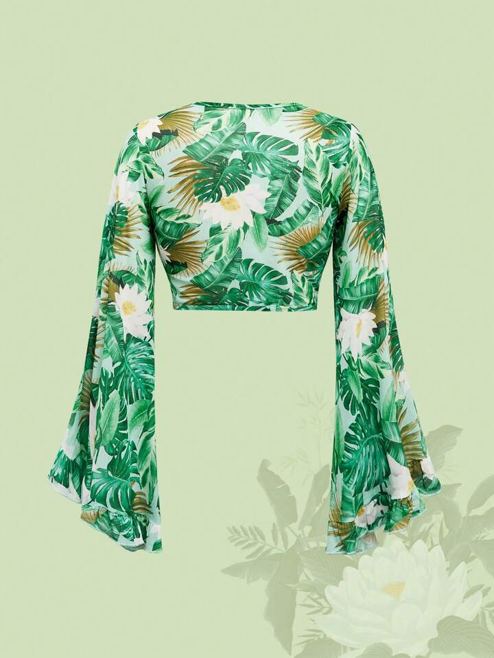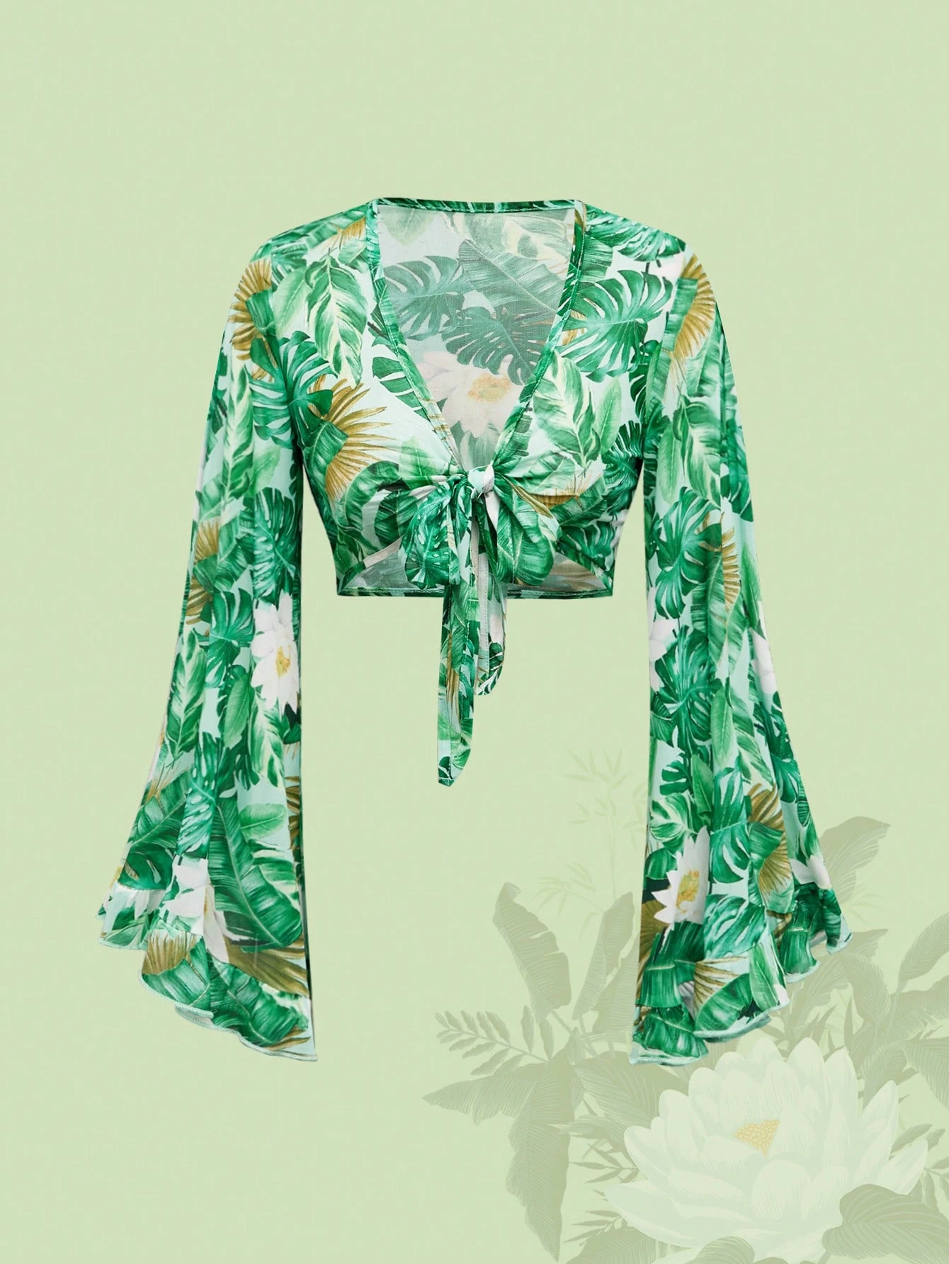 The White Lotus Cardigan estivi da donna in chiffon da spiaggia con lacci davanti, maniche a campana e polsini con volant