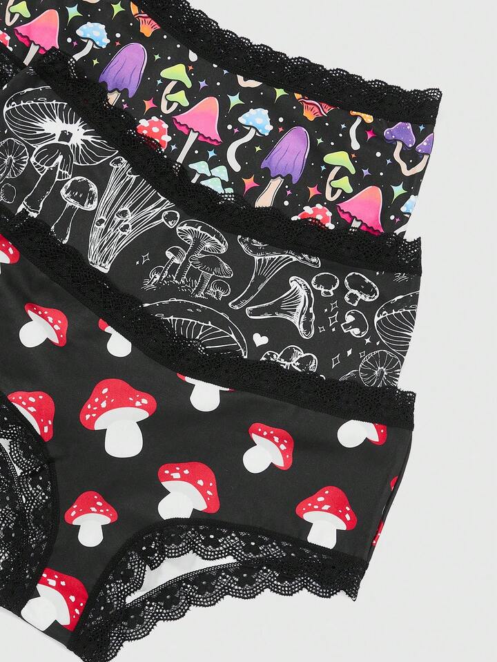 ThisUniqueVibe 3 pezzi Brief con stampa funghi pizzo a contrasto