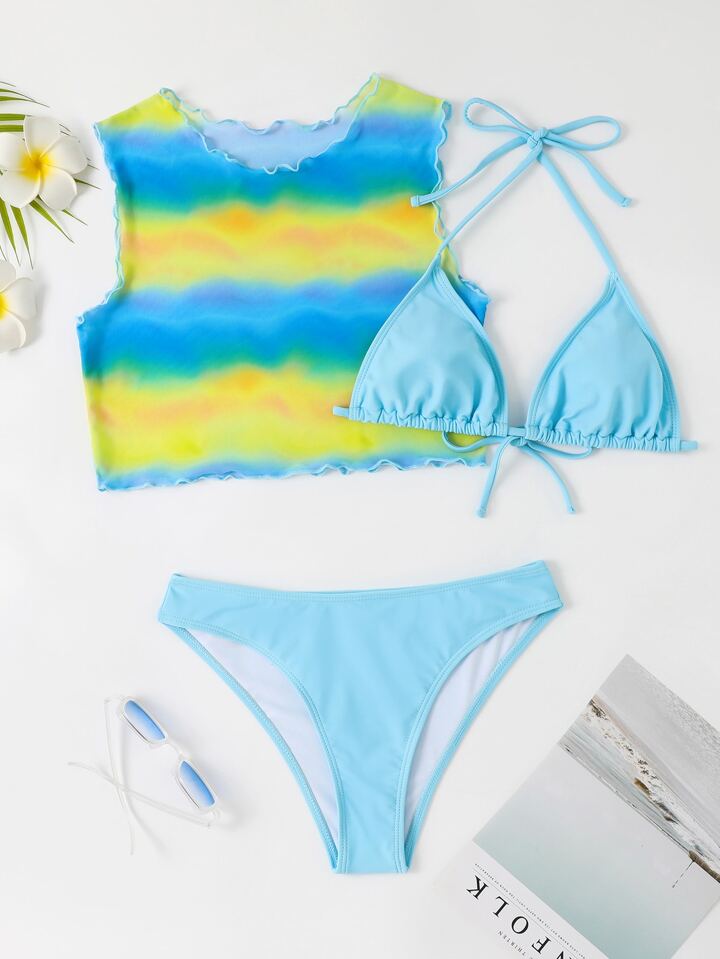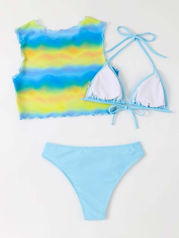Set bikini estivo con camicia copri, stile tie-dye a halter per la spiaggia