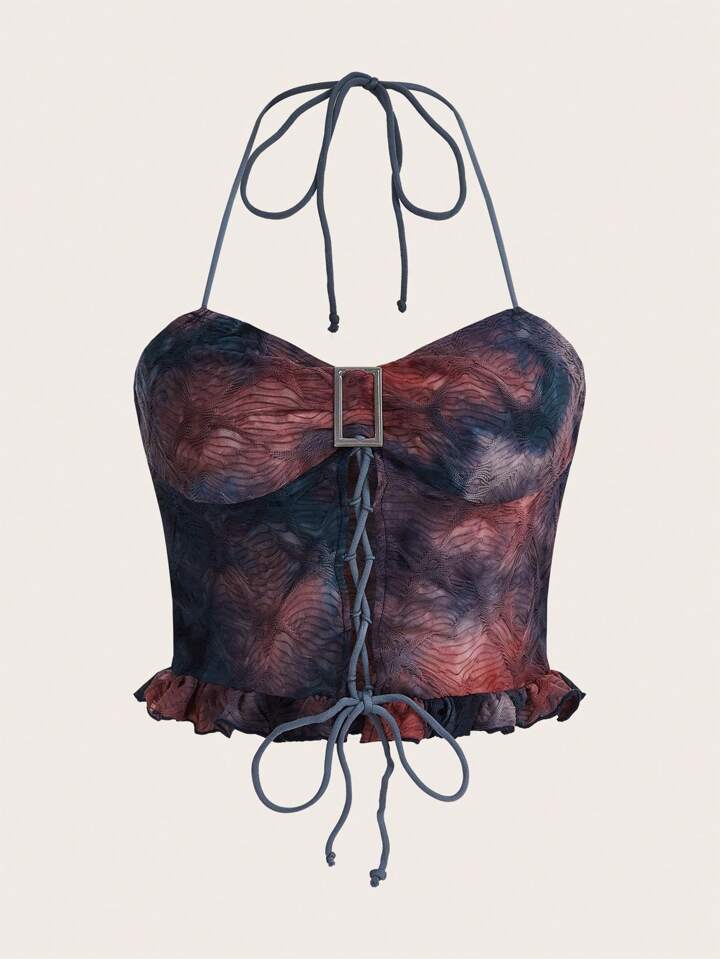 Top halter tie dye con lacci frontale