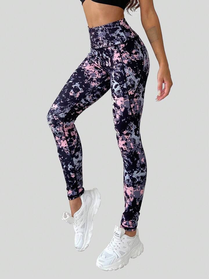 Leggings da corsa con effetto tie-dye, cuciture a vista, morbidezza e alta elasticità, pantaloni sportivi da donna con tasche laterali per il telefono, adatti per lo yoga