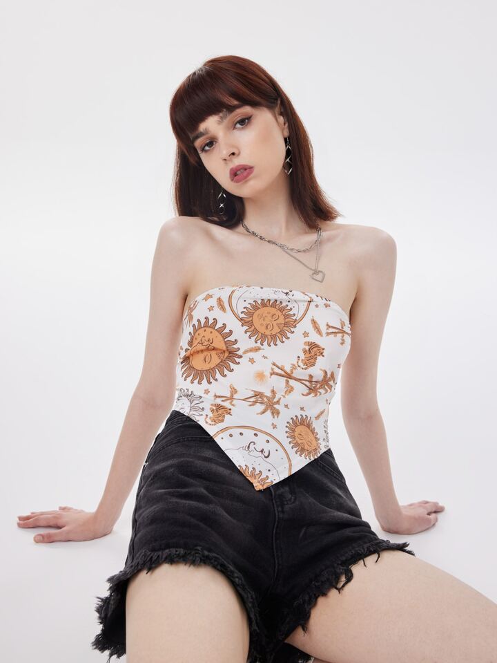 Top tubo tigre & con stampa tropicale