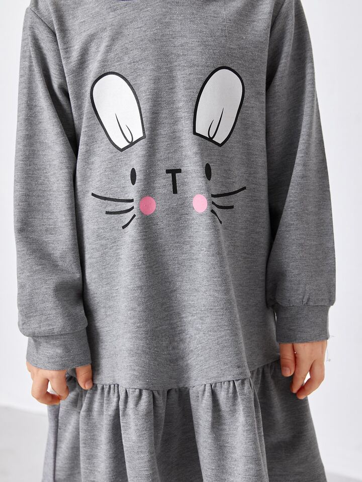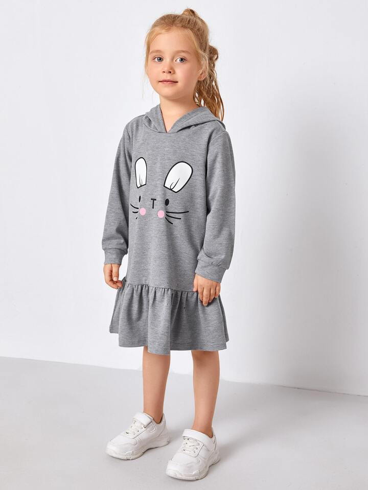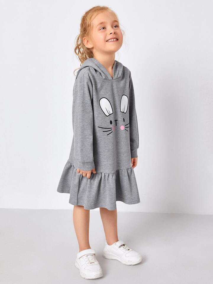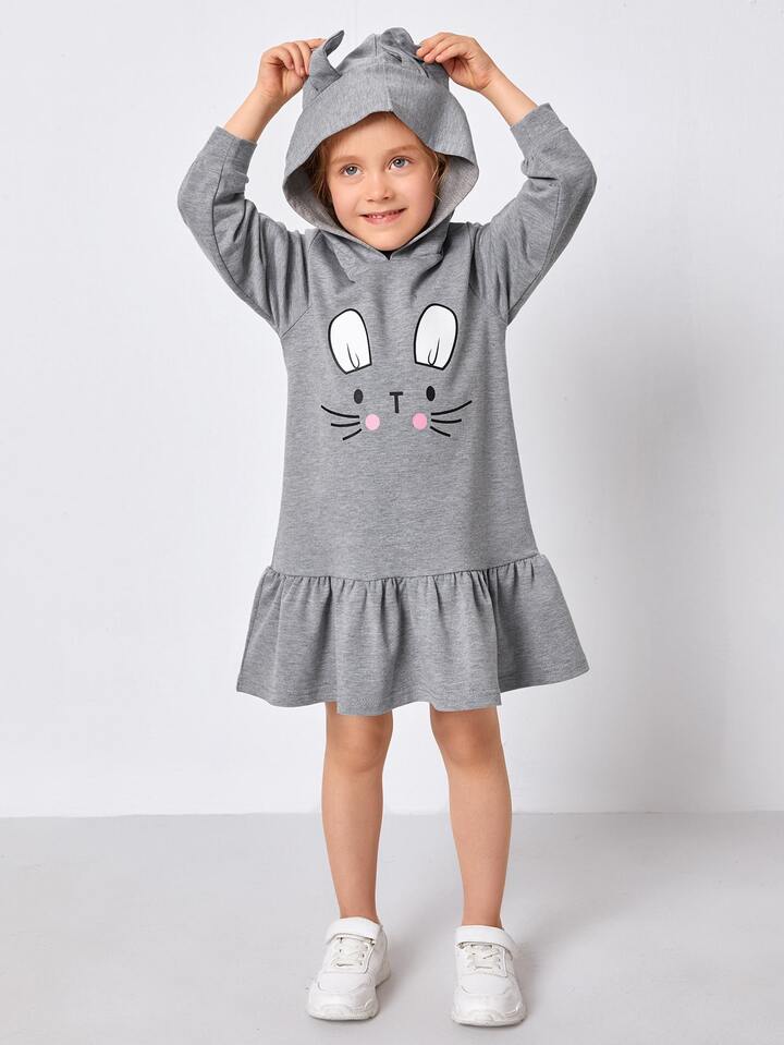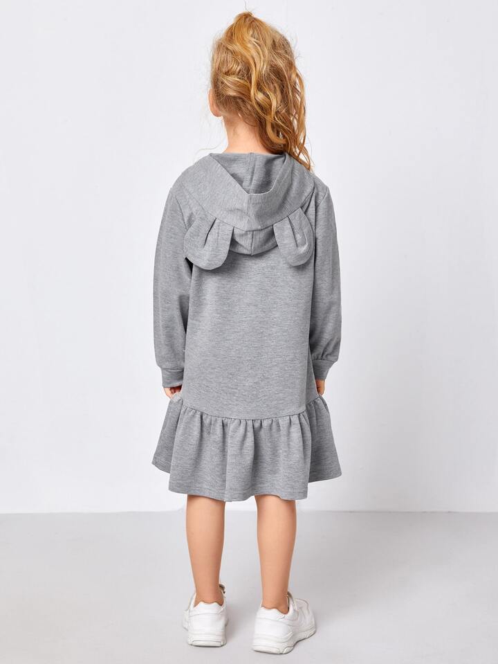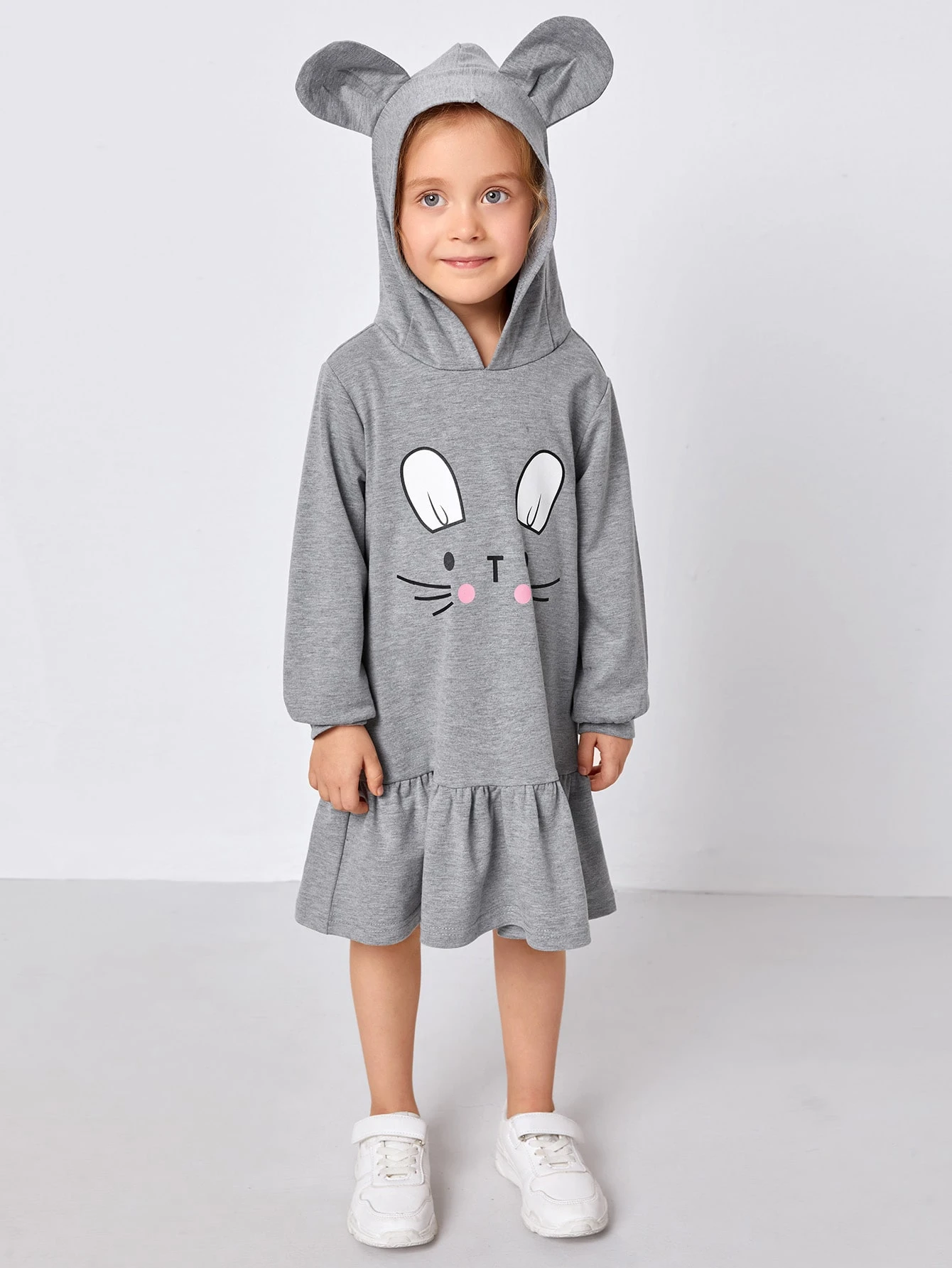 Abito con cappuccio e volant con design 3D orecchio grafica fumetto