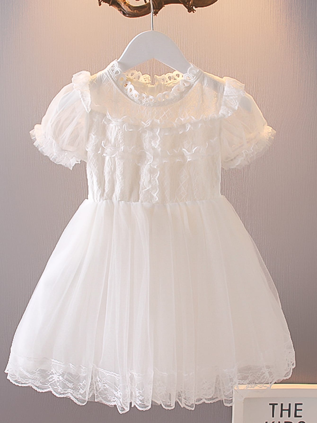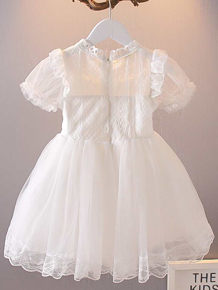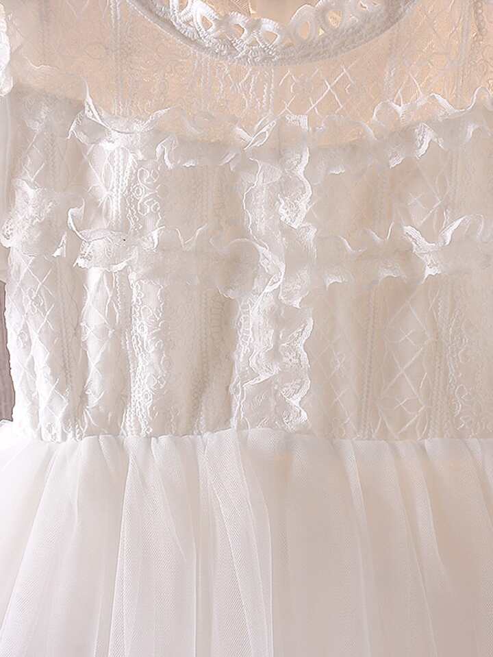 Abito da sera con manica a sbuffo con zip indietro con pizzo a contrasto