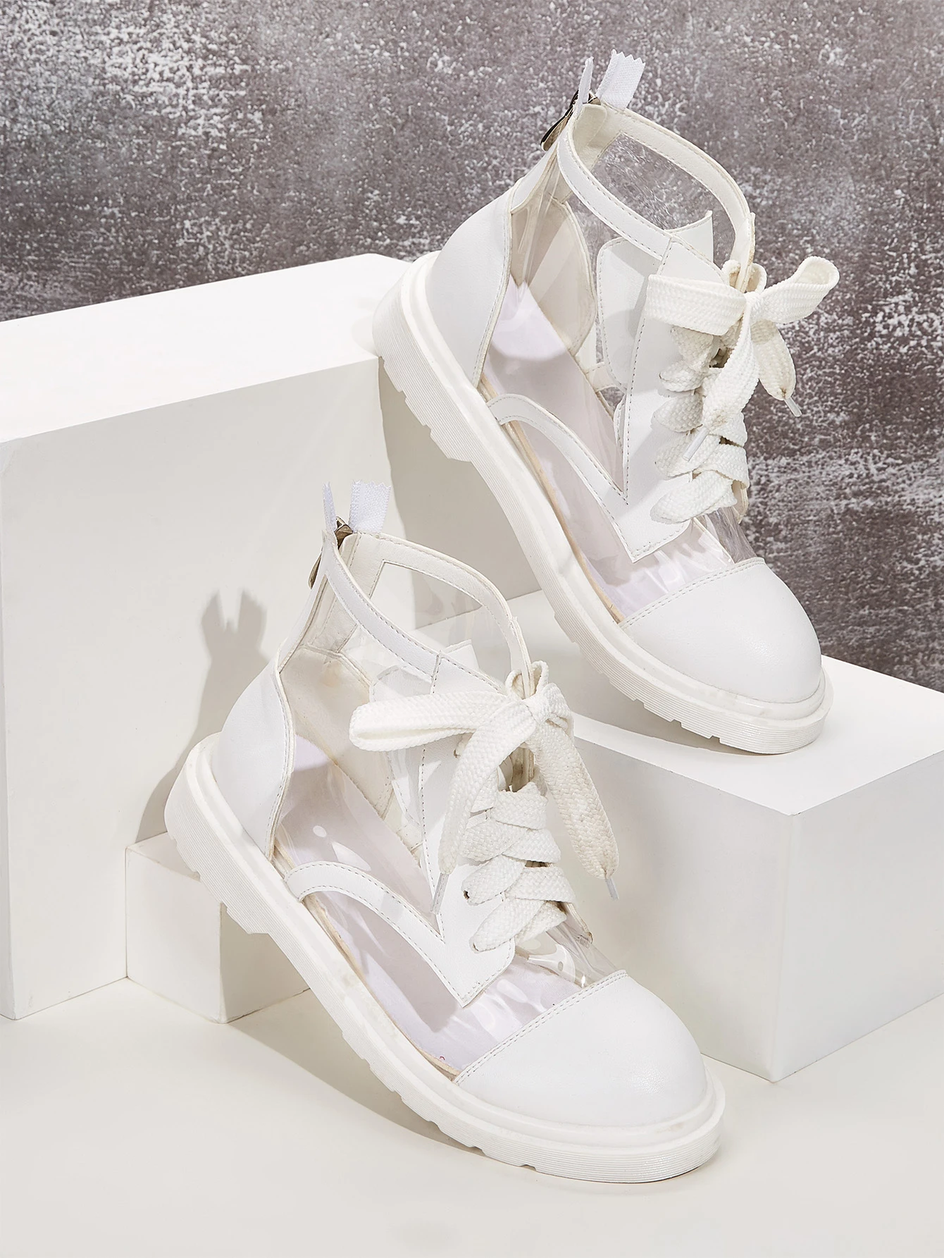 Stivali a caviglia trasparenti con cucita posteriore