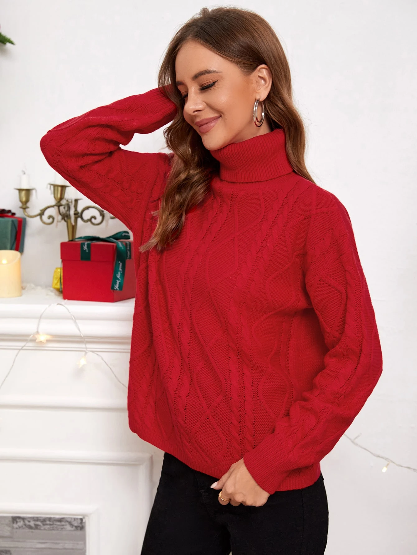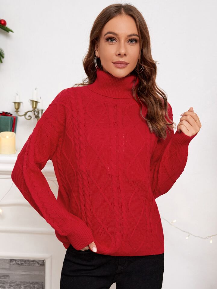 Maglione Dolcevita trecce a maglia spalle cadenti