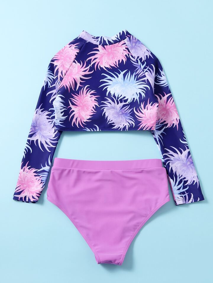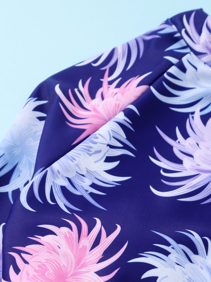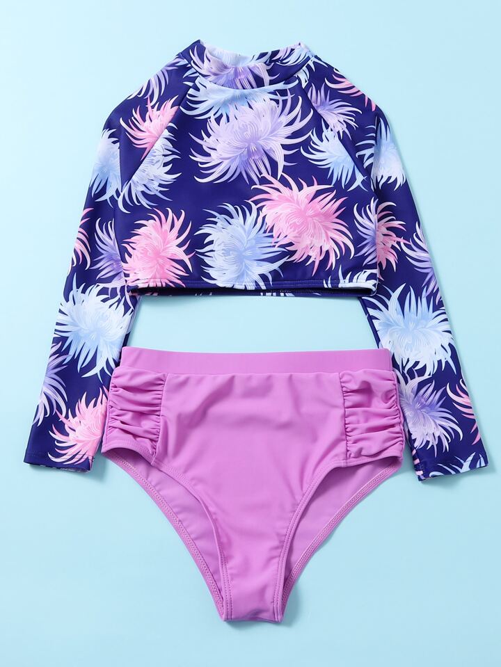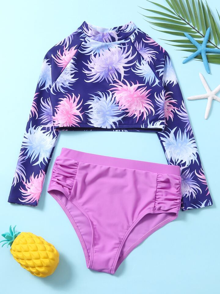Ragazze teen gonna alta in vita con fantasia floreale e maglia protettiva da spiaggia estiva