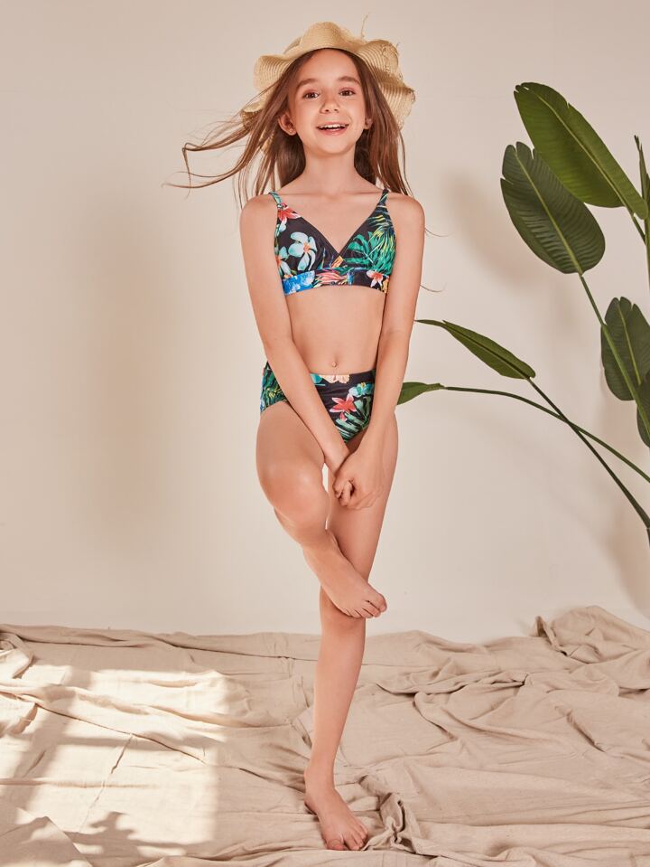 Set di bikini con stampa floreale e tropicale per ragazze adolescenti Estate Spiaggia