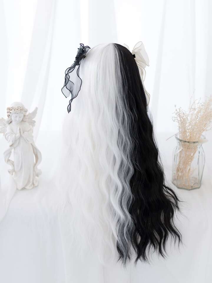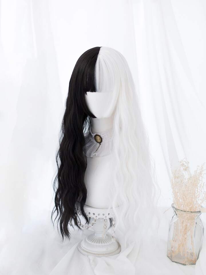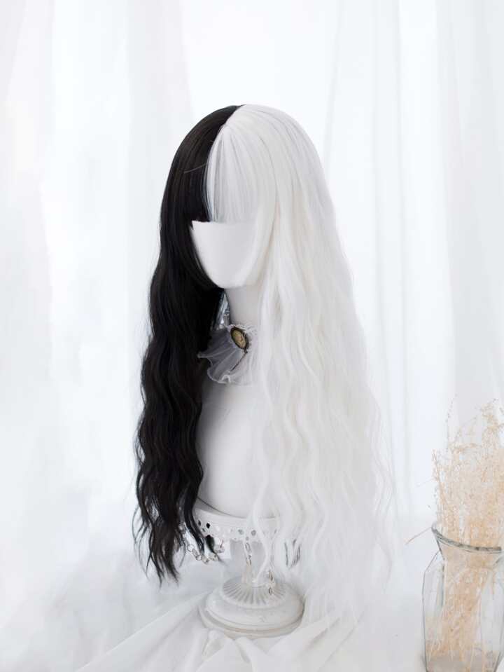 Parrucca sintetica bicolore lungo riccio con scoppi