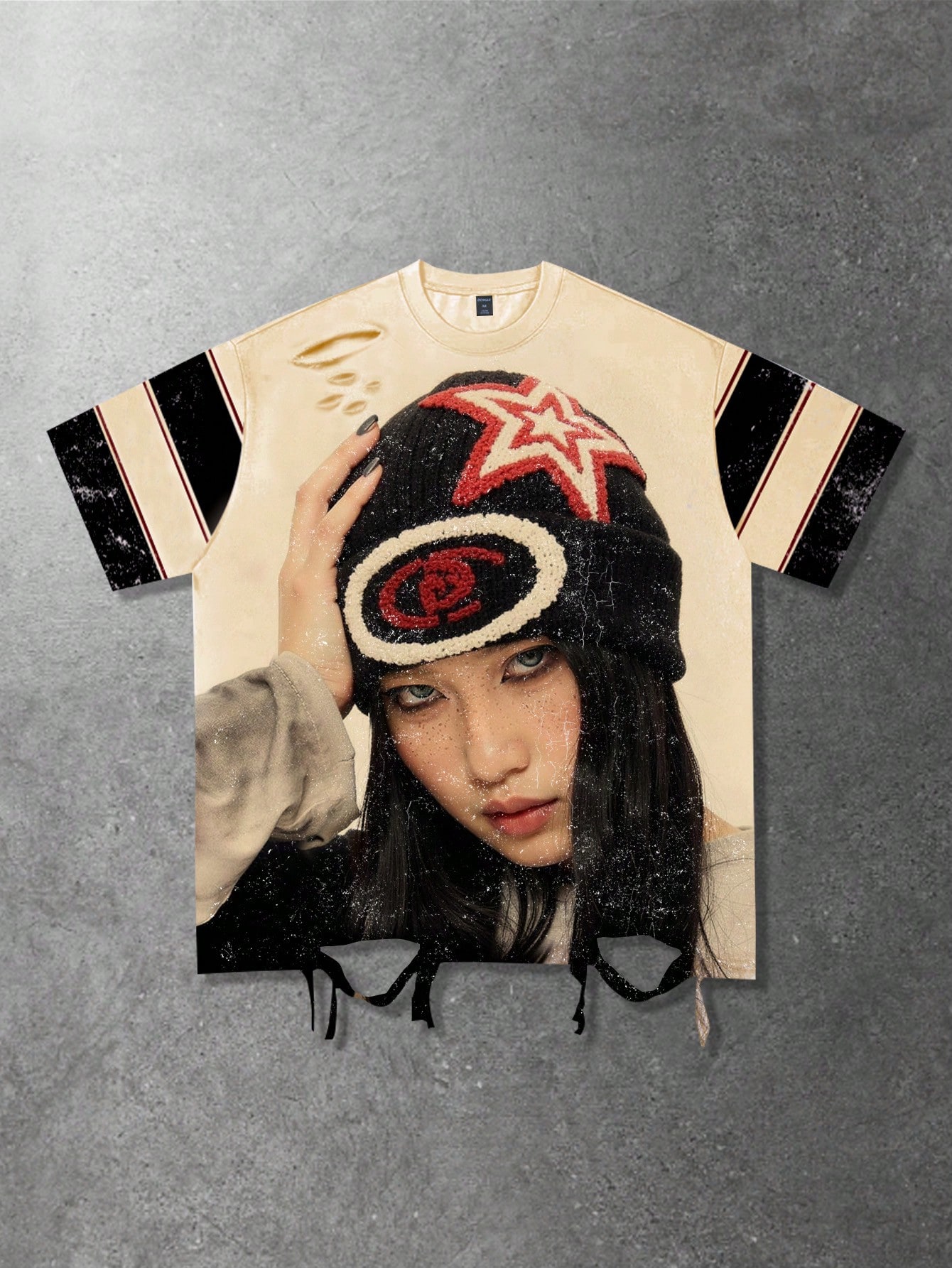 maglietta girocollo a maniche corte con grafica consumata, casual, unisex