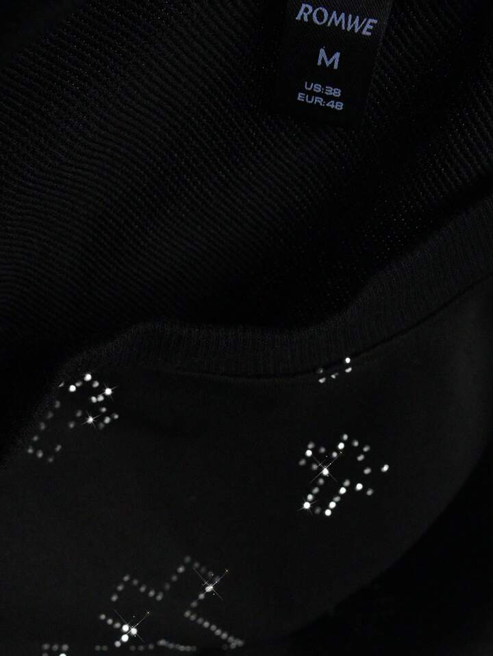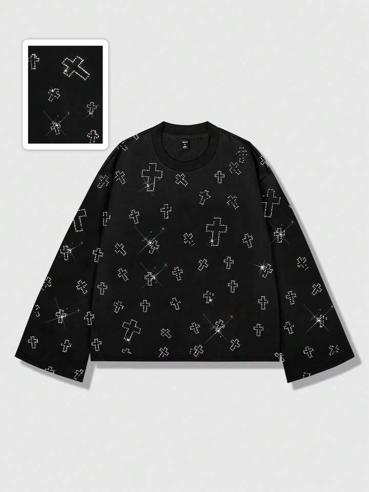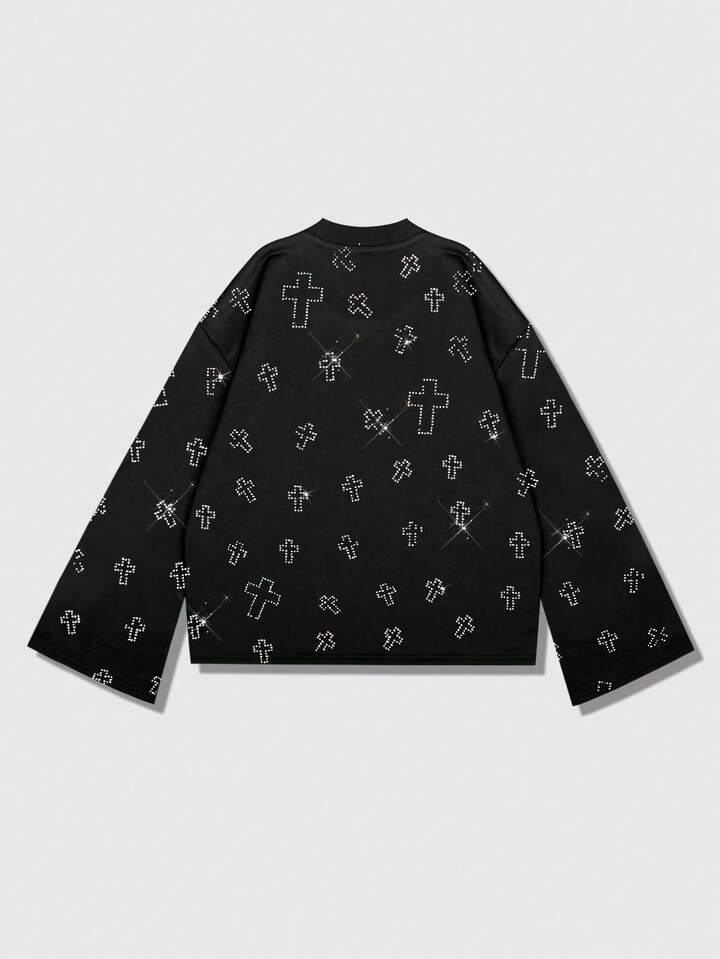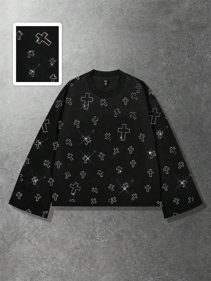 T-shirt girocollo a maniche lunghe unisex casual e alla moda, con decorazioni in strass