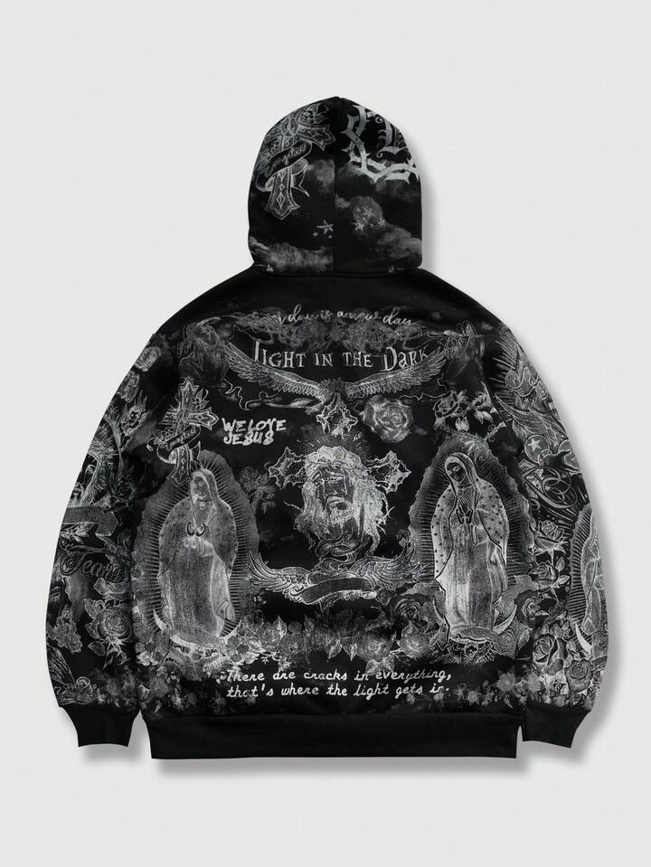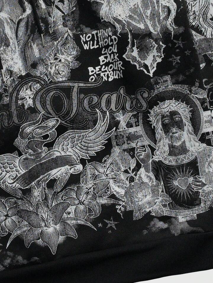 Felpa con cappuccio casual e punk, stile da strada, unisex