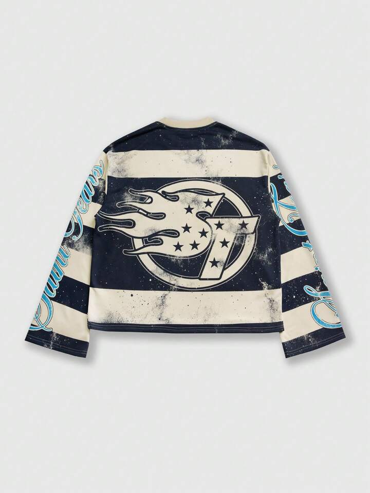 T-shirt casual unisex a girocollo con stampa, top a maniche lunghe in stile casual da coppia, primavera/autunno