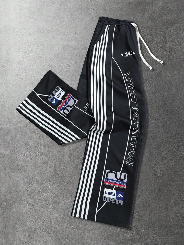Pantaloni della tuta casual dritti unisex con stampa grafica in inglese americano