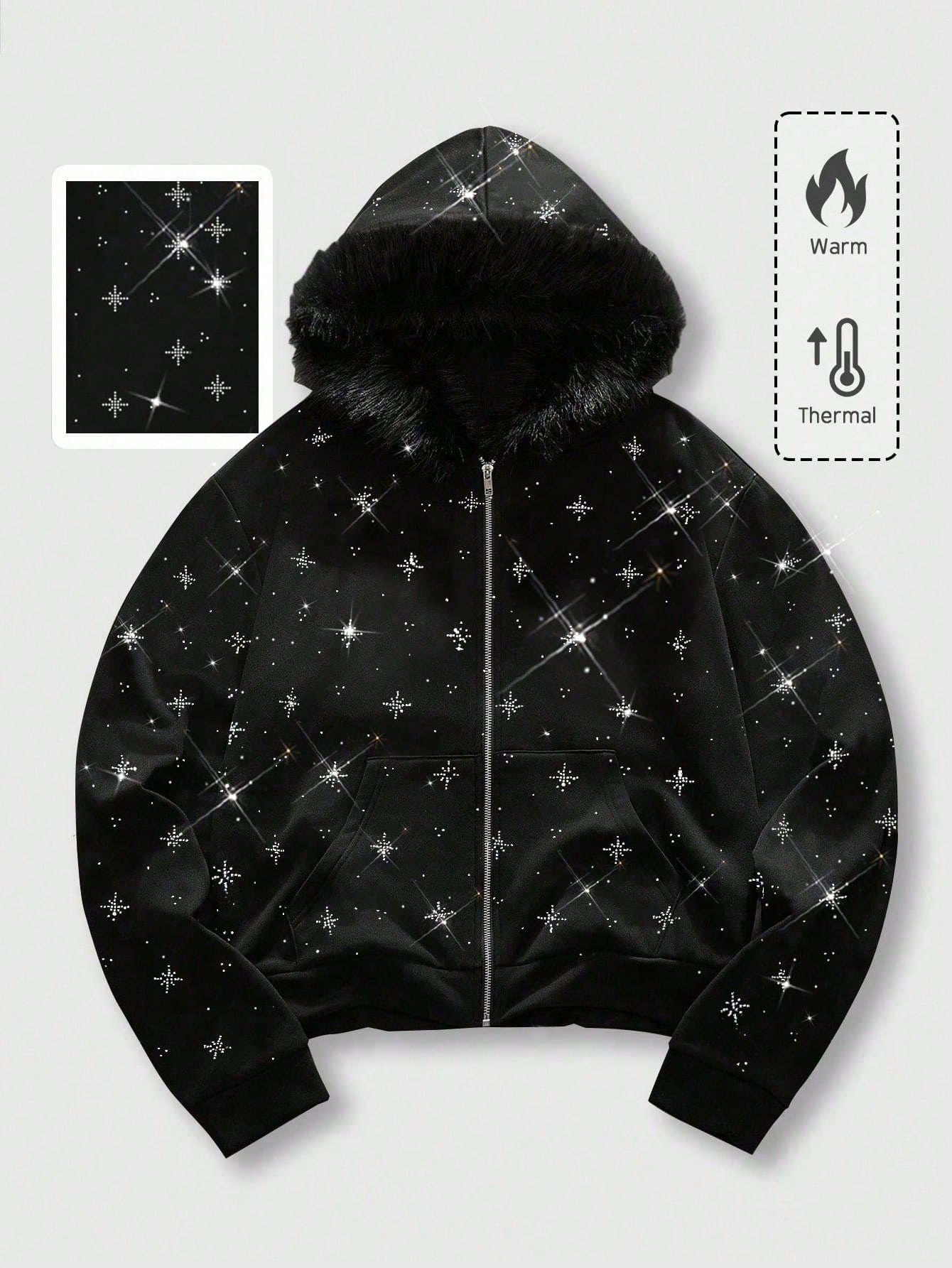 Felpa con cappuccio e chiusura lampo unisex per coppie, con decorazioni in strass