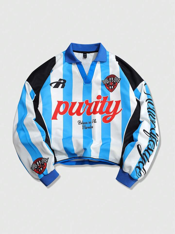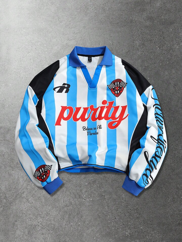 T-shirt a maniche lunghe unisex con stampa calcistica inglese, stile casual sportivo