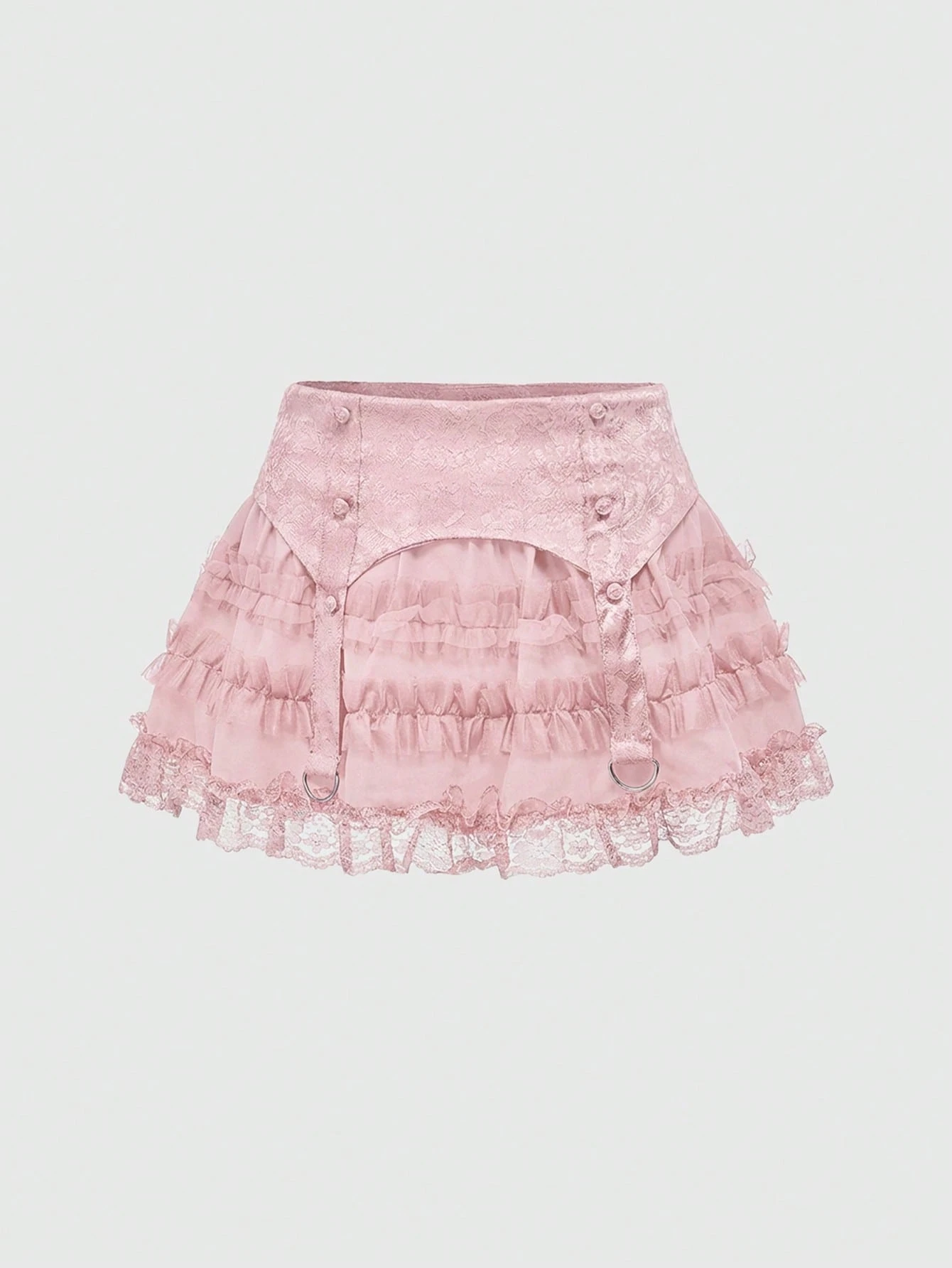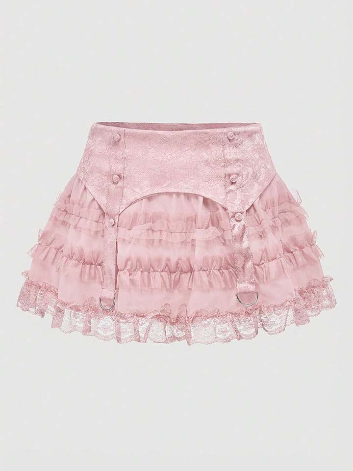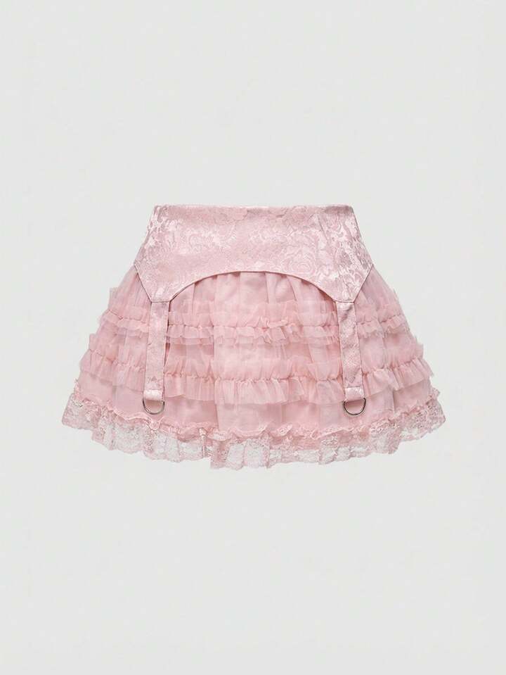Goth Gonna mini a vita bassa da donna con orlo a coda di torta, in pizzo jacquard e rete, stile gotico, per San Valentino