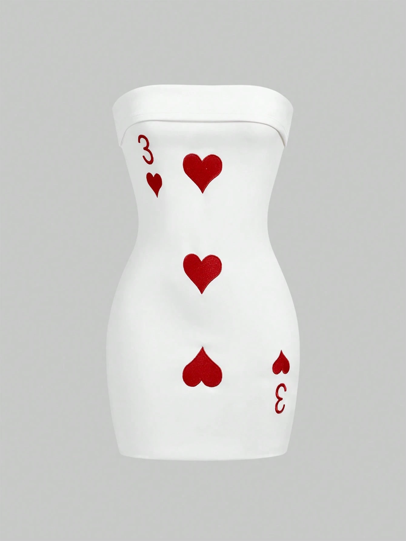 Vestito mini a fascia ricamato a forma di cuore a tema San Valentino