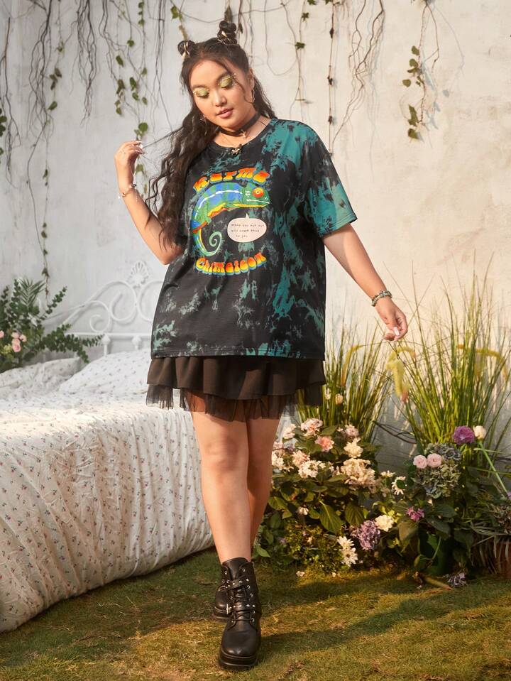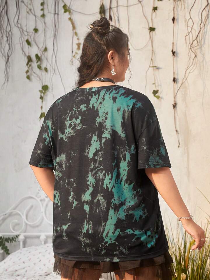 Vincenttrinidadart Taglie Forti Maglietta con spalla cadenti tie dye con grafica lettera