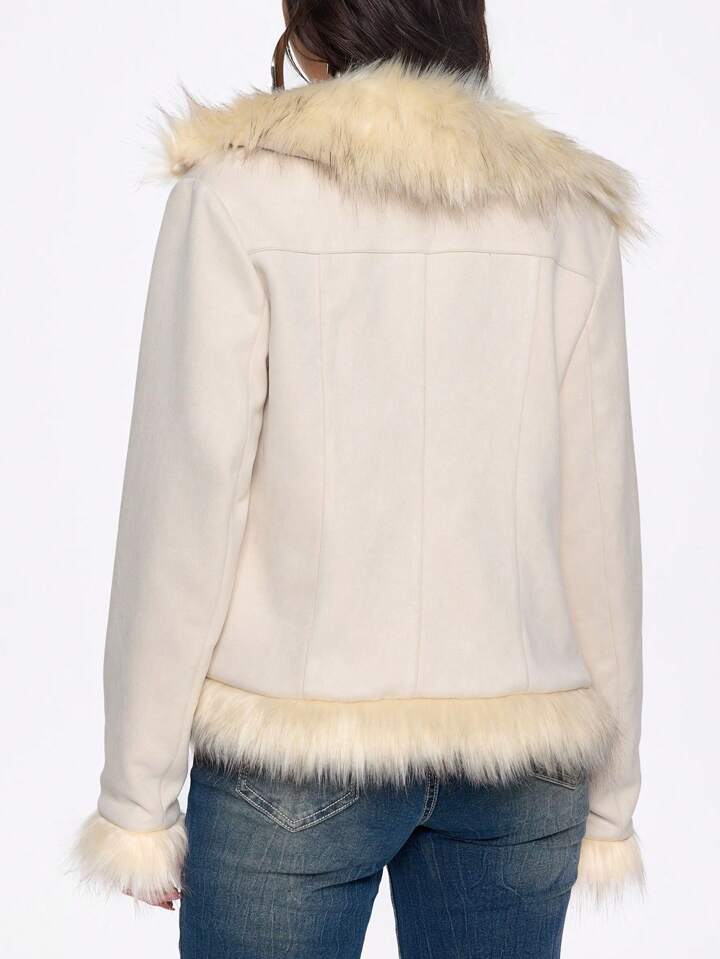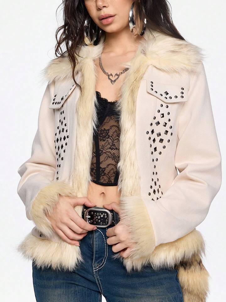 Giacca in pelle vintage effetto vissuto con borchie e collo in pelliccia sintetica