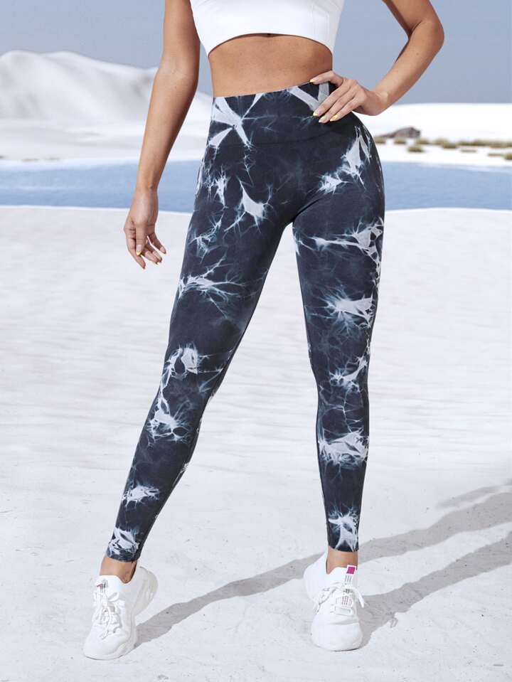 Leggings sportivi ampia fascia in vita monocolore