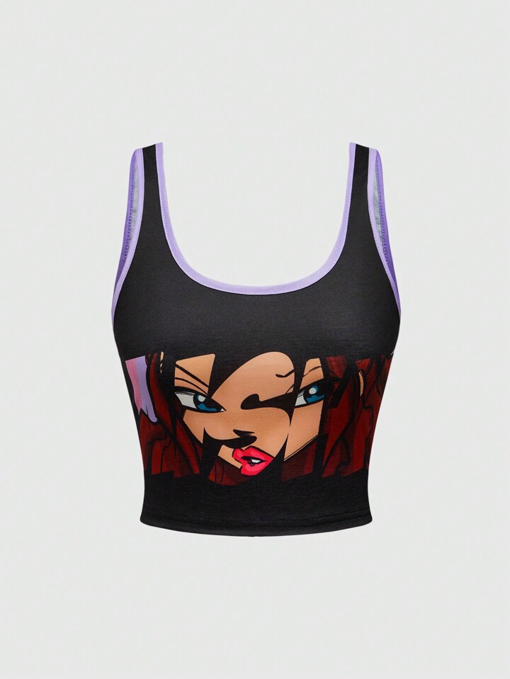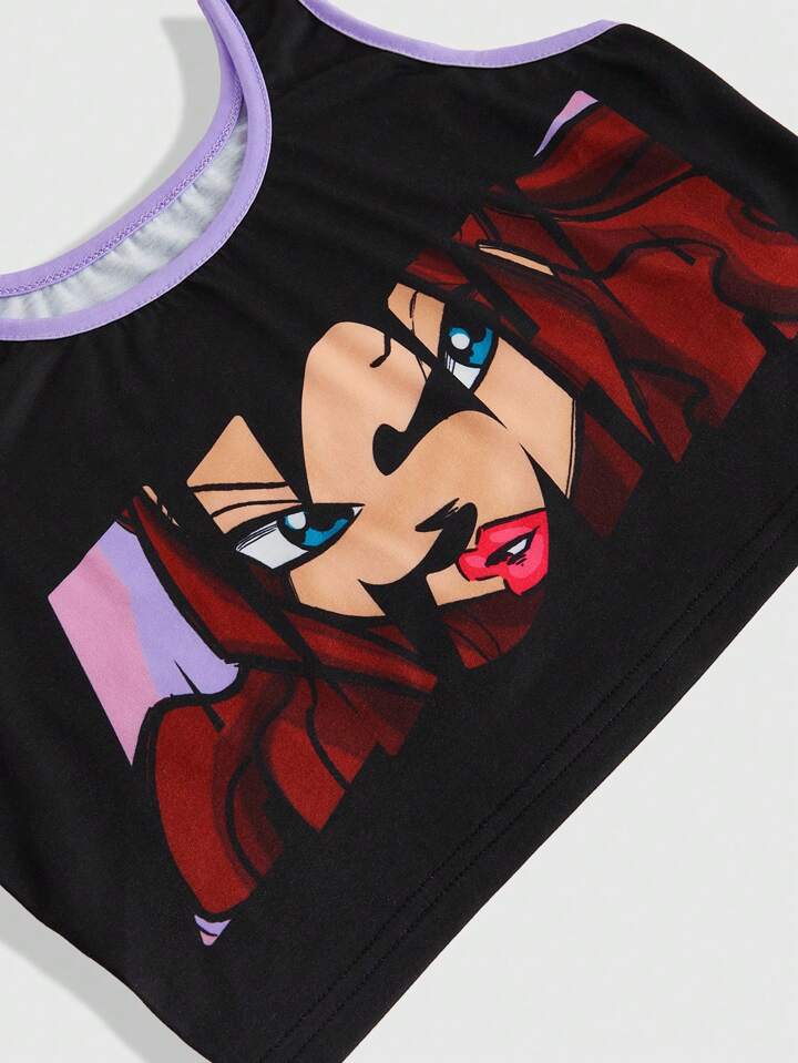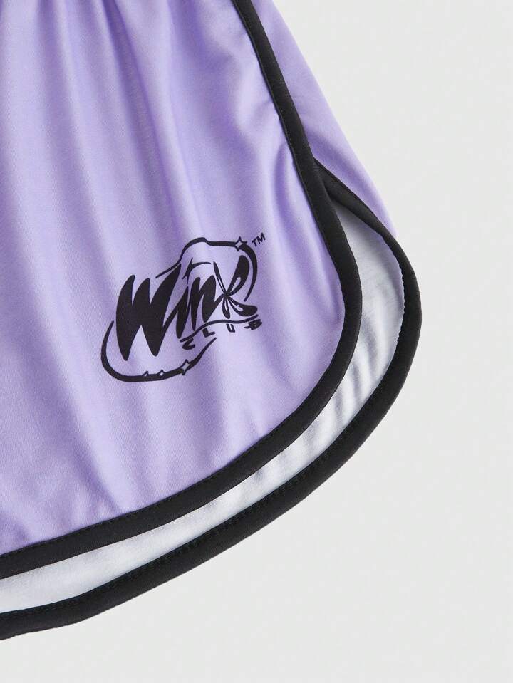 Winx Club X ROMWE Set pigiama estivo da donna con canotta con stampa di personaggi dei cartoni animati e pantaloncini con coulisse in vita bicolore