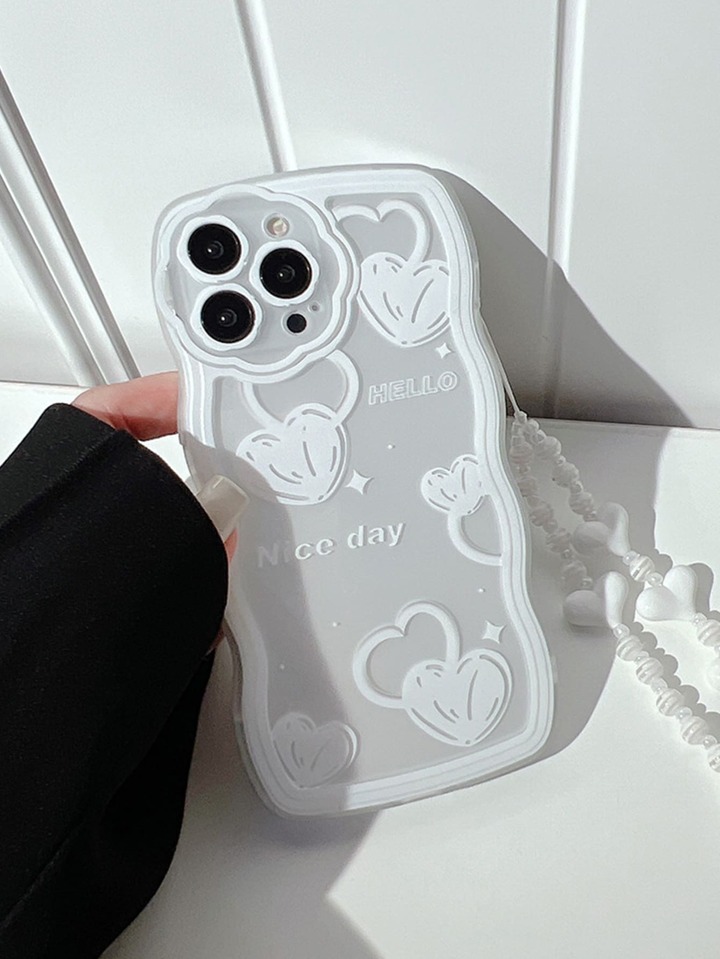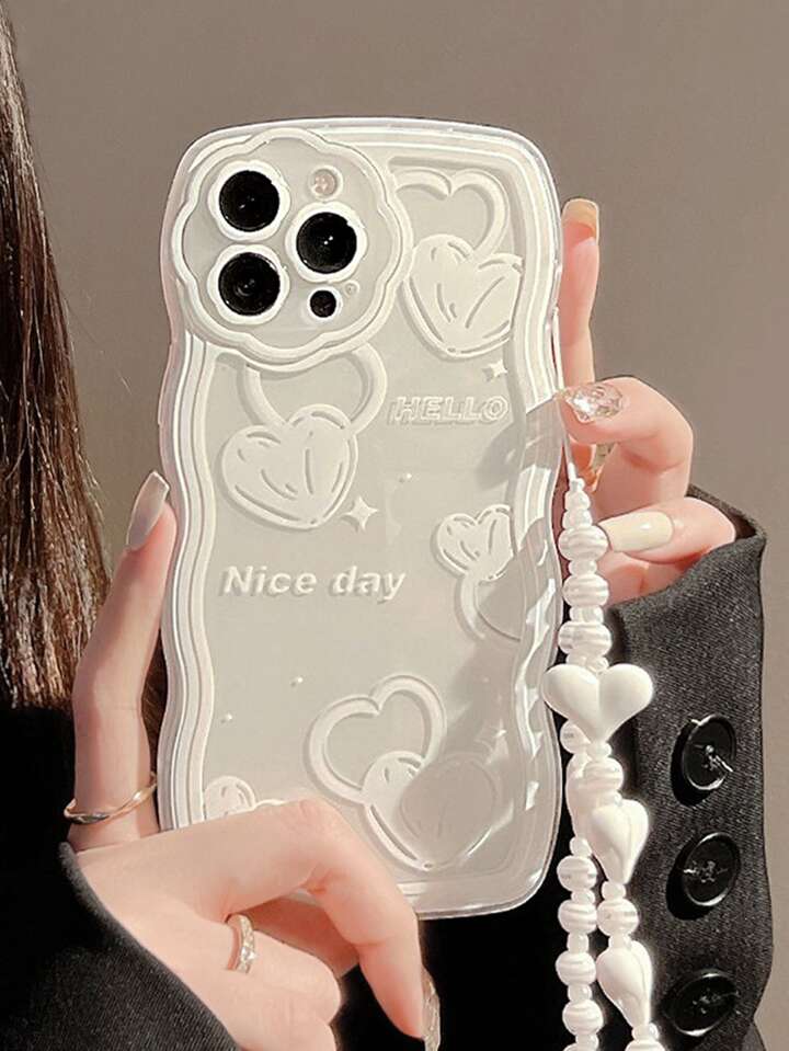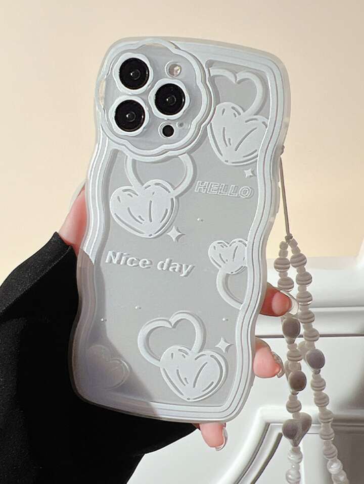Custodia per telefono con ciondolo a forma di cuore a motivo chiaro compatibile con iPhone 11, iPhone 13, iPhone 14 Pro Max, con cordino