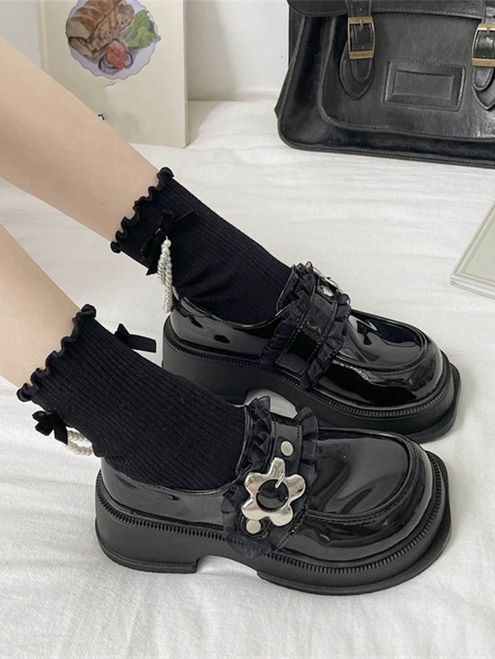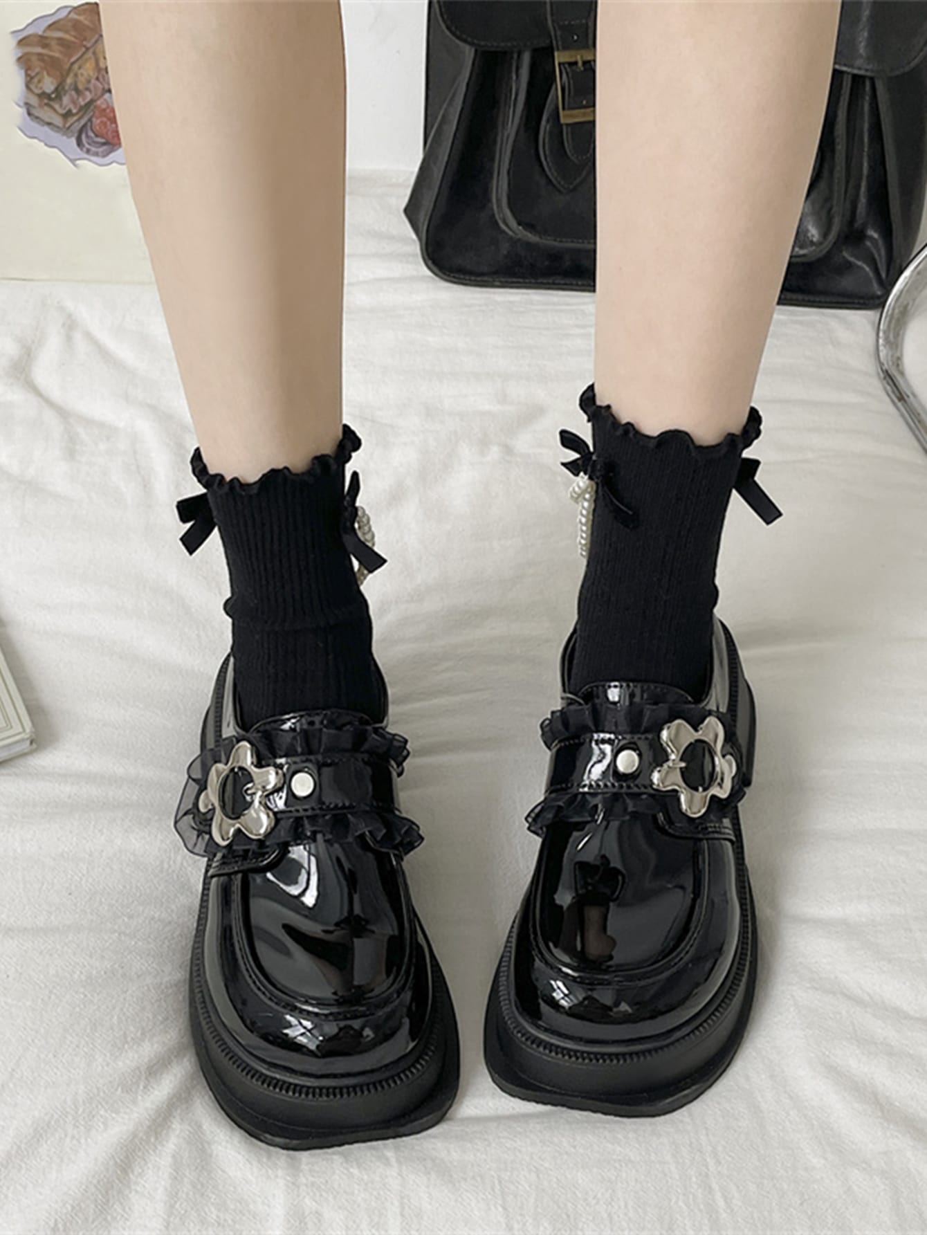 Donna Scarpe con decorazione floreale minimalista preppy nero piattaforma
