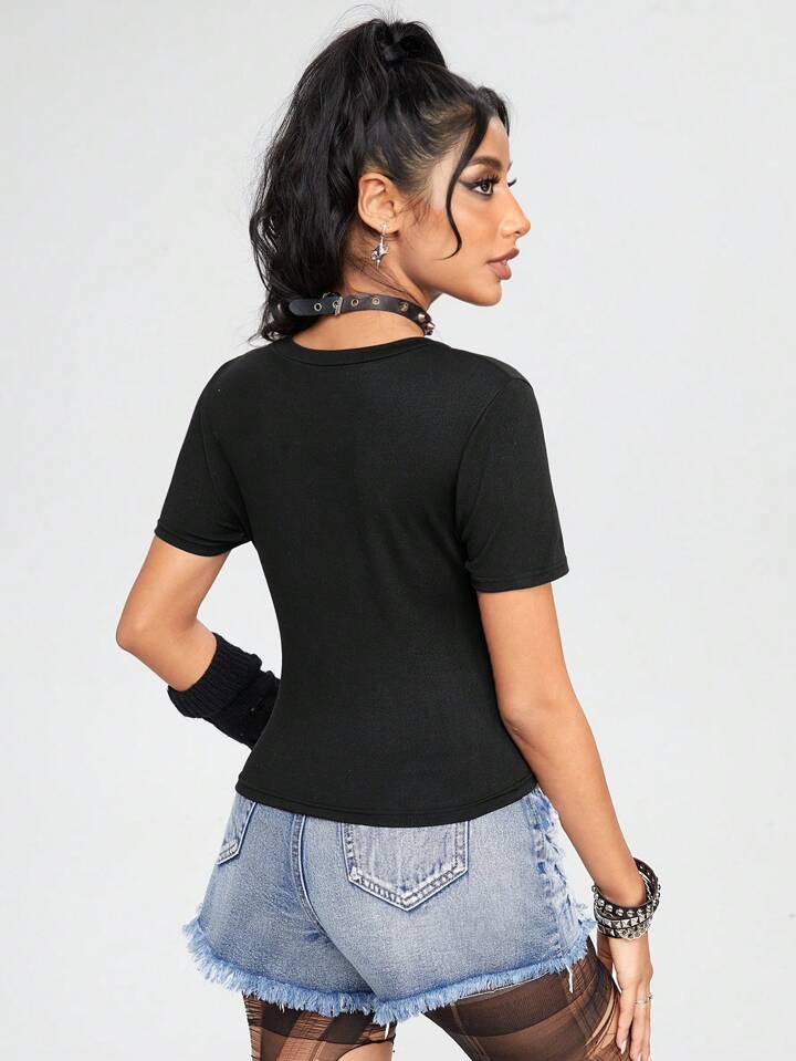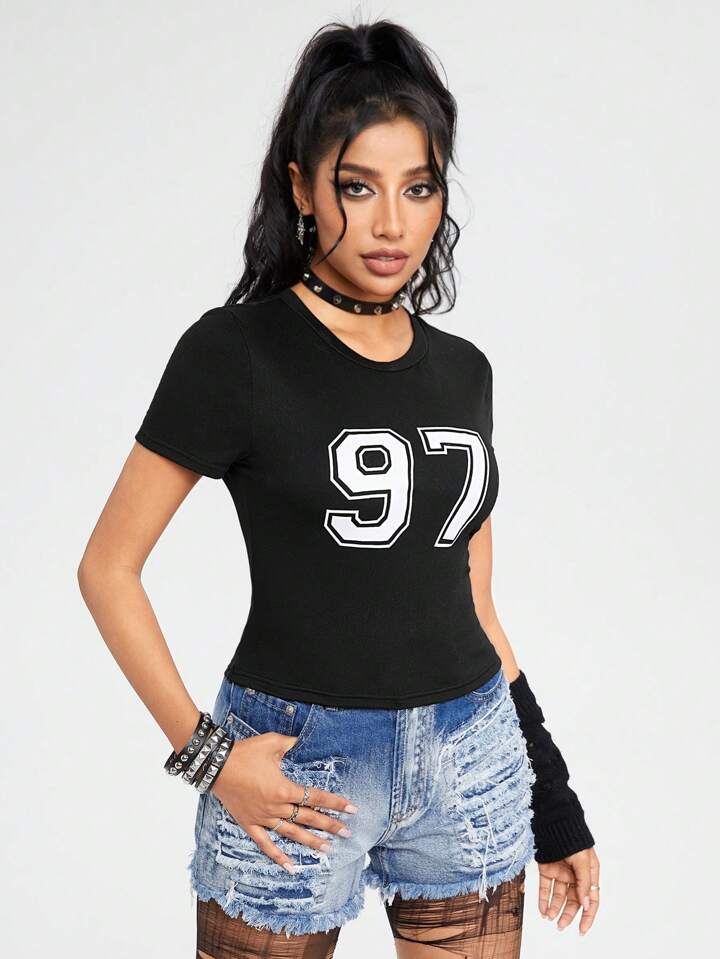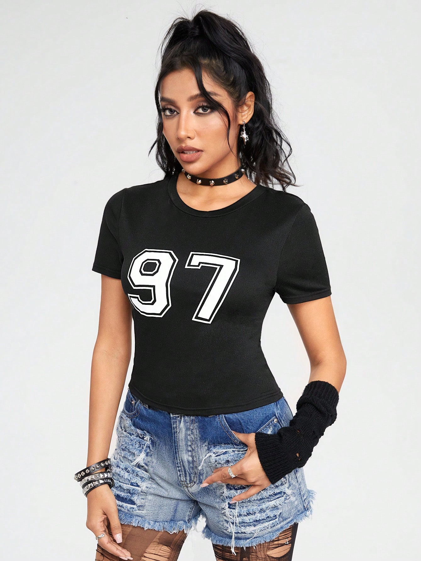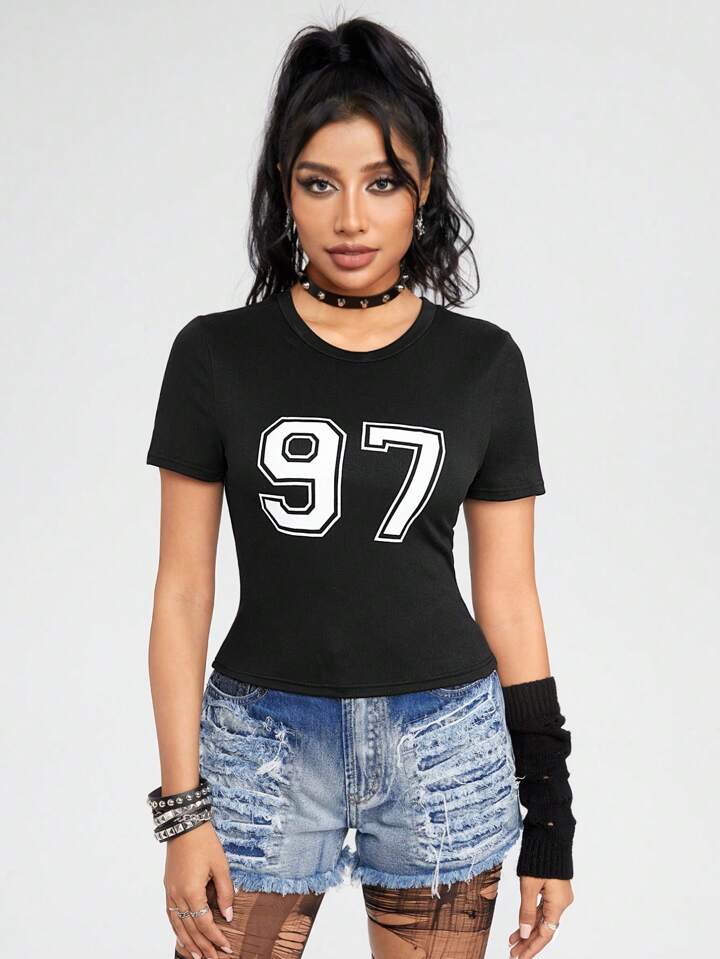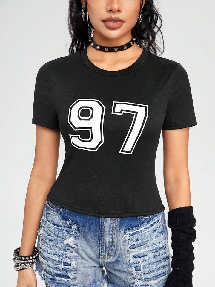 Maglietta Donna Casual Aderente Elasticizzata A Maniche Corte Con Scollo Rotondo E Stampa Digitale 97, Versatile