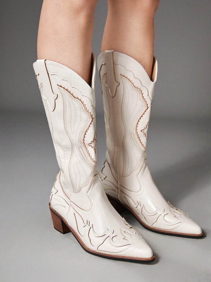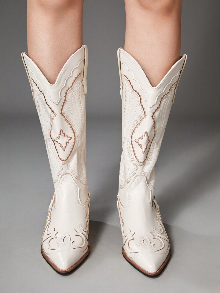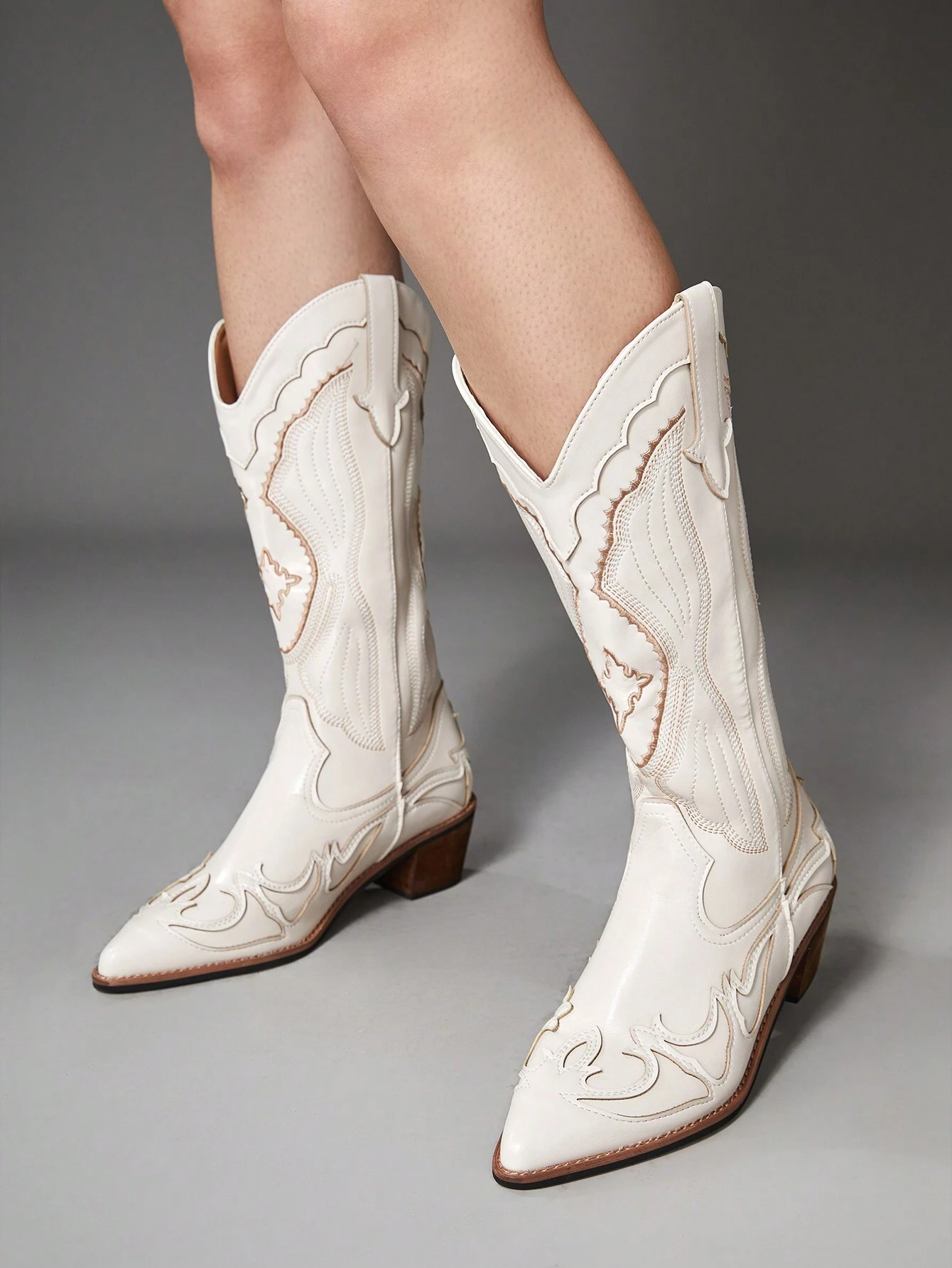 Stivali western per le donne con punta a punto cucitura, stivali fashion punk all'aperto, stivali da cowboy per le donne