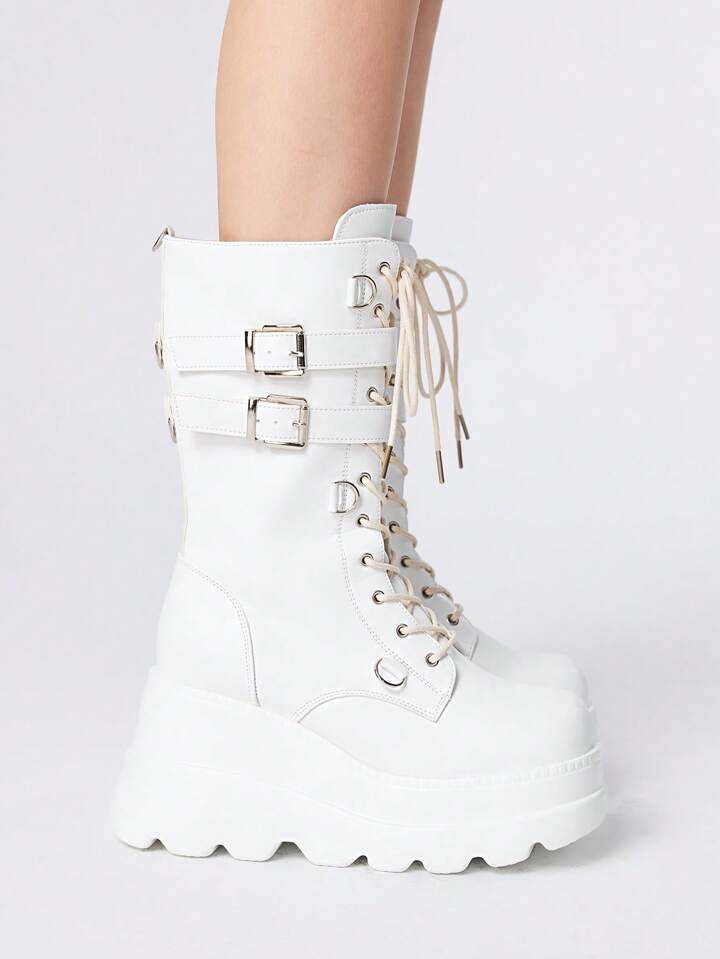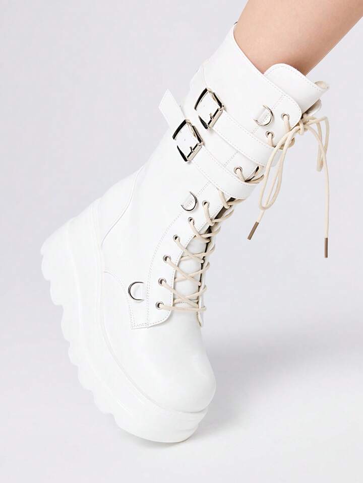Stivali da donna a punta tonda neri con plateau, stile gotico punk, stringati, con borchie, alla caviglia, adatti per Ognissanti