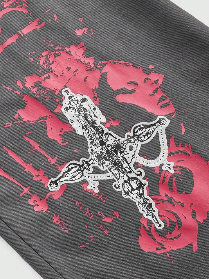Pantaloni Ampi A Gambe Larghe Con Stampa Floreale E Croce Per Donna