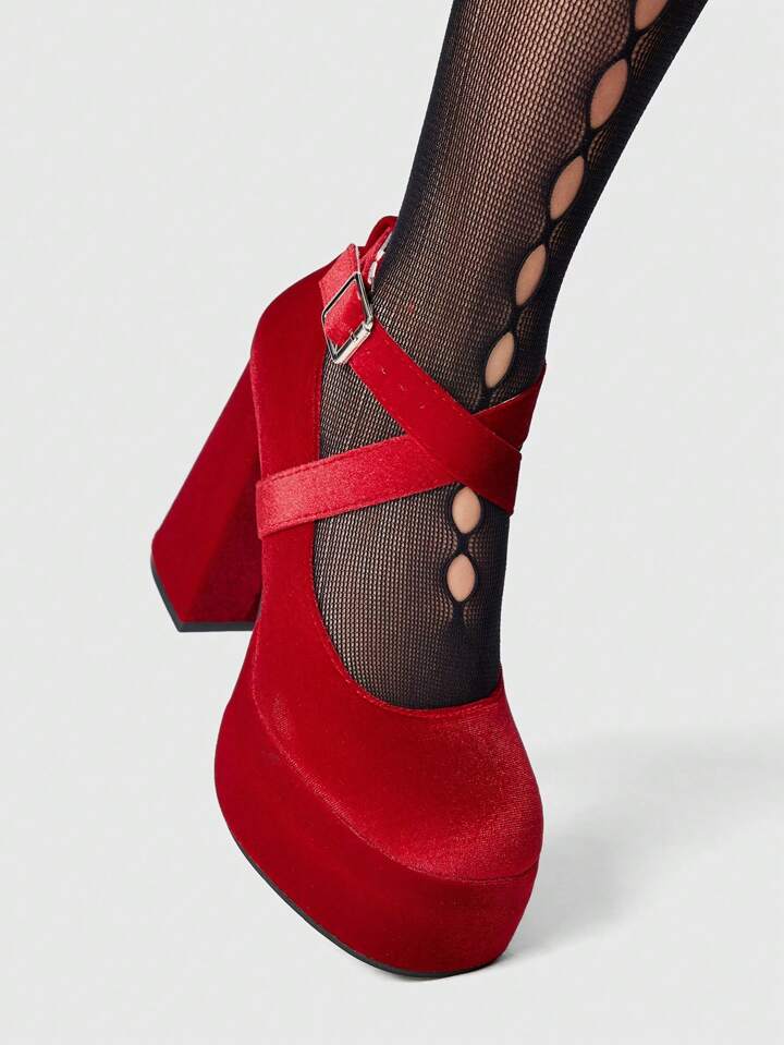 Eleganti tacchi alti in velluto rosso alla moda per le donne, adatti per capodanno e altre occasioni festive