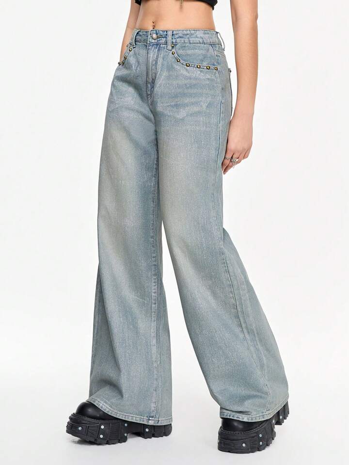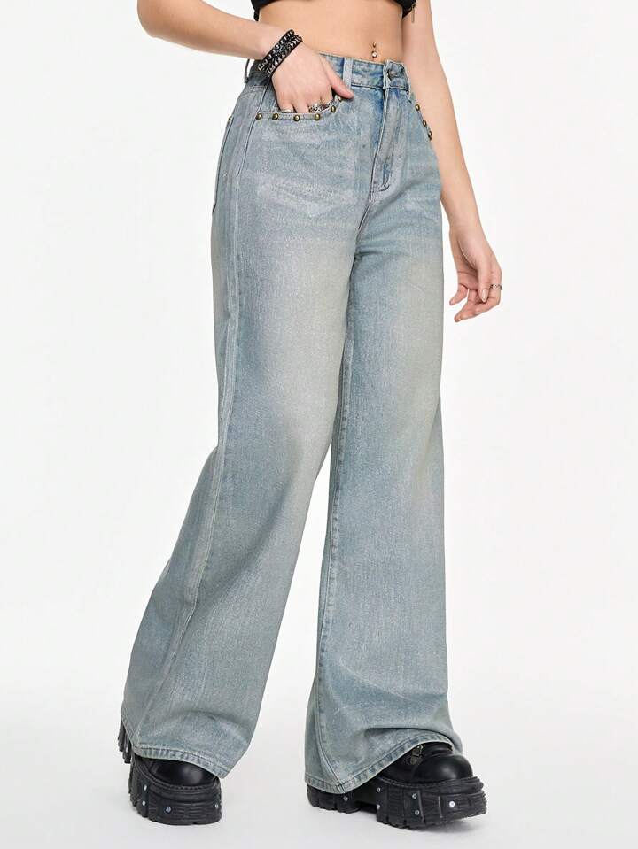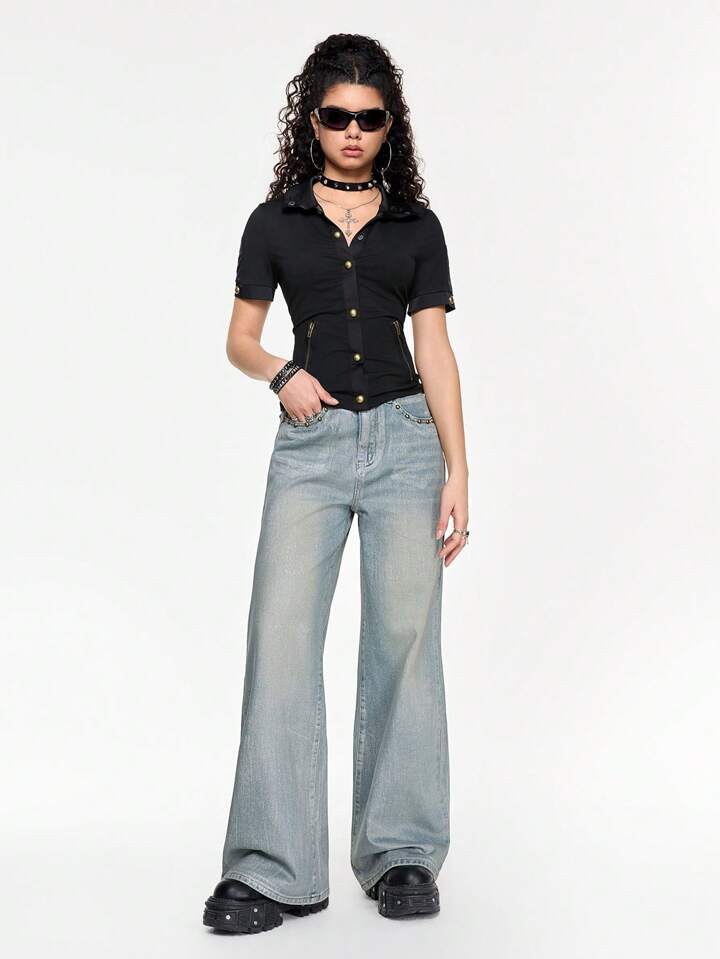 Jeans casual donna, vestibilità ampia, con tasche frontali e bottoni, adatti all'uso quotidiano