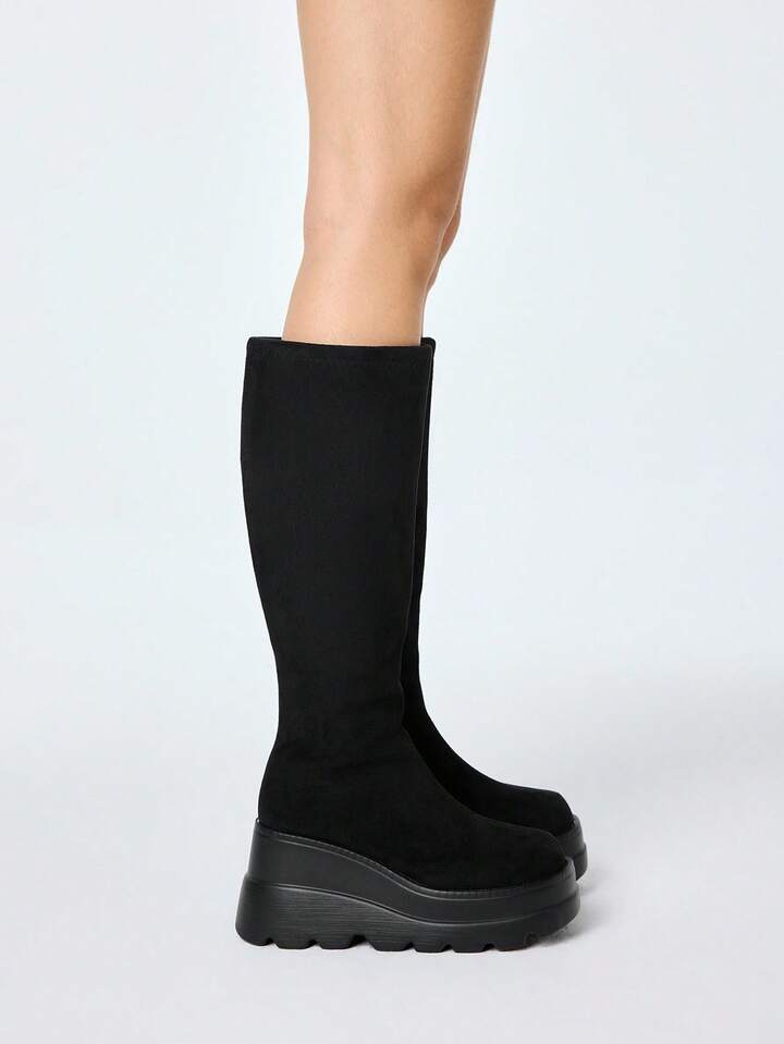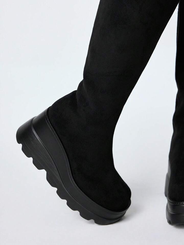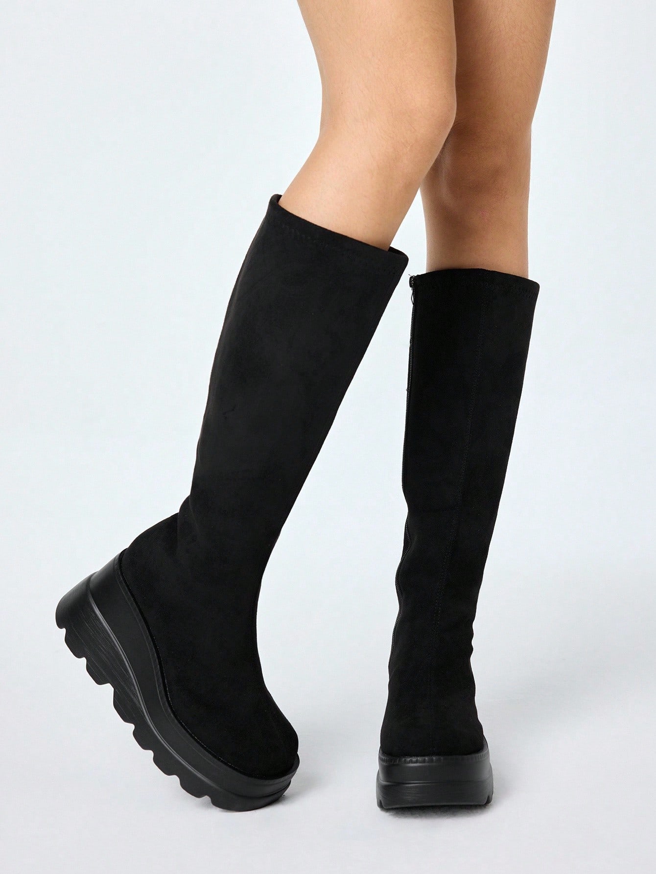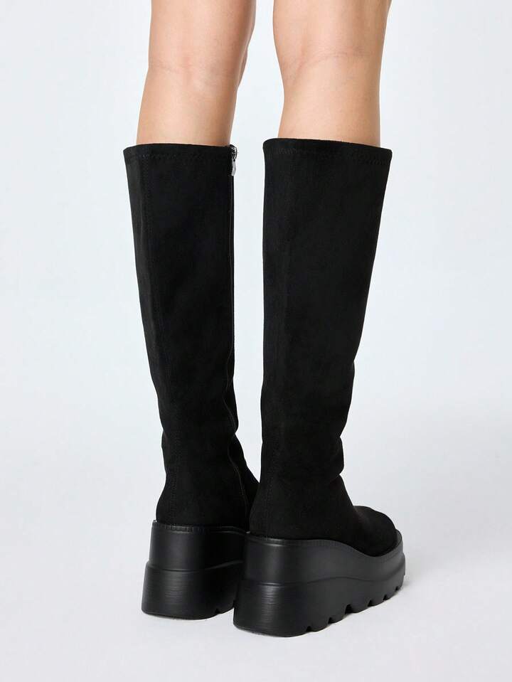 Goth Stivali da cavallerizza con cerniera laterale e tacco a zeppa, stile gotico rock punk, stivali da motociclista con lacci in stile Y2K, stivali alti elasticizzati, stivali alla caviglia punk dark casual per uso quotidiano