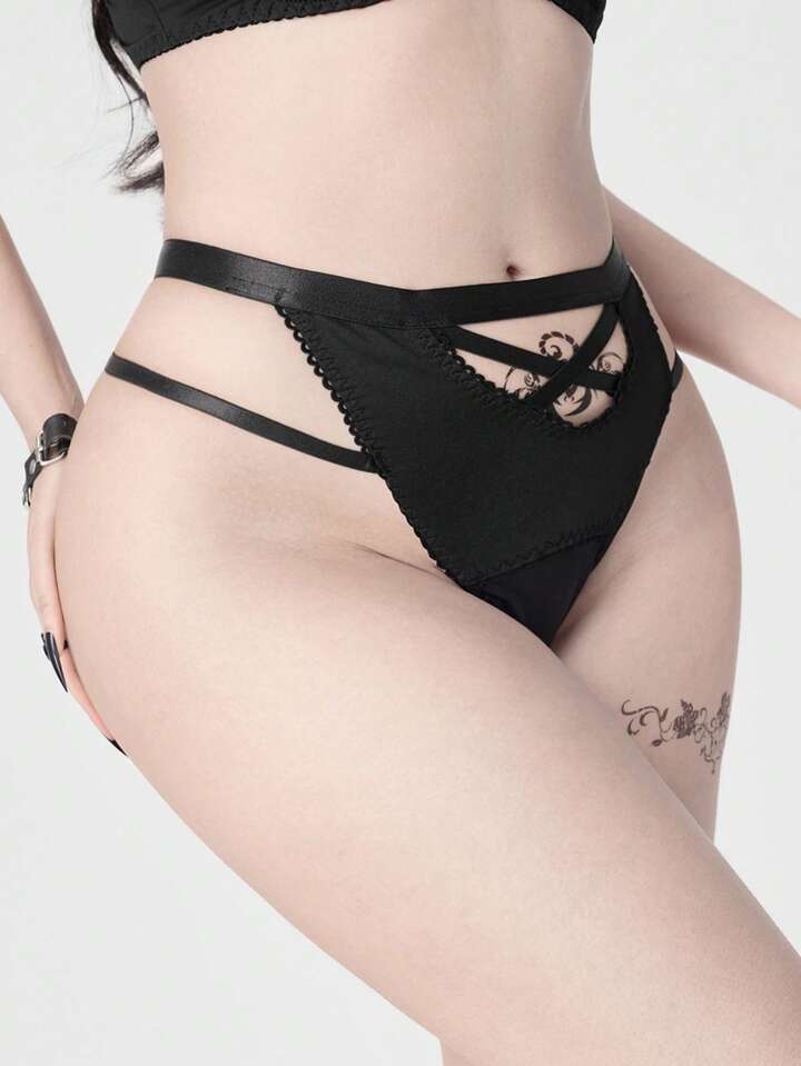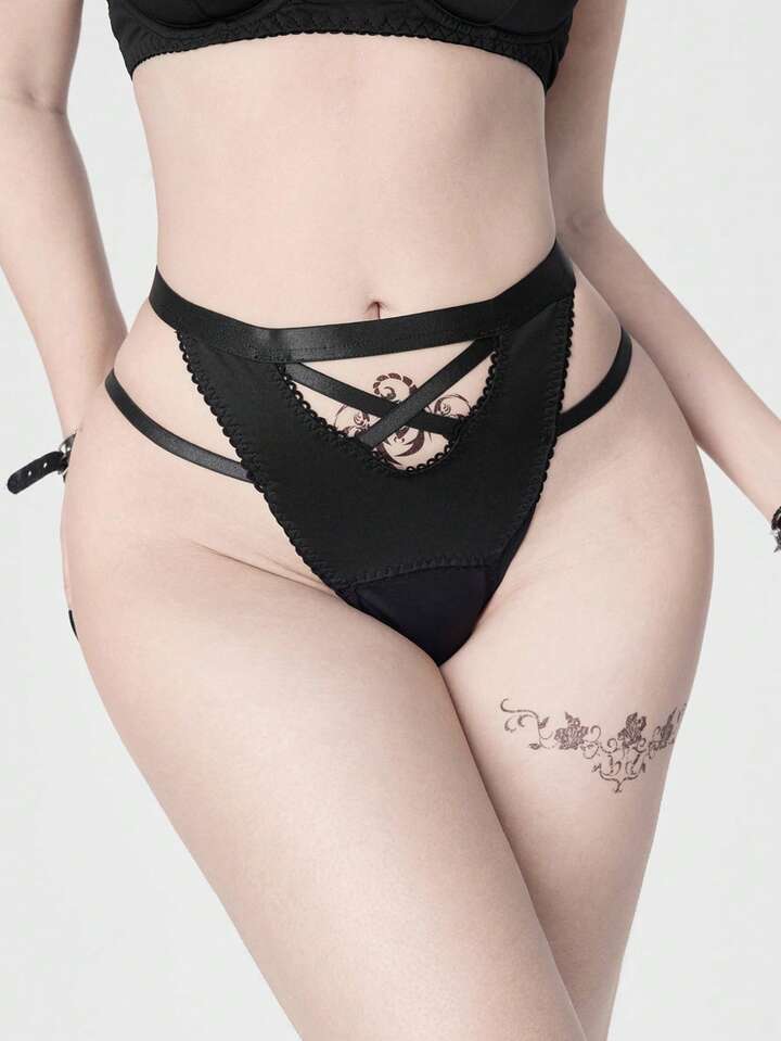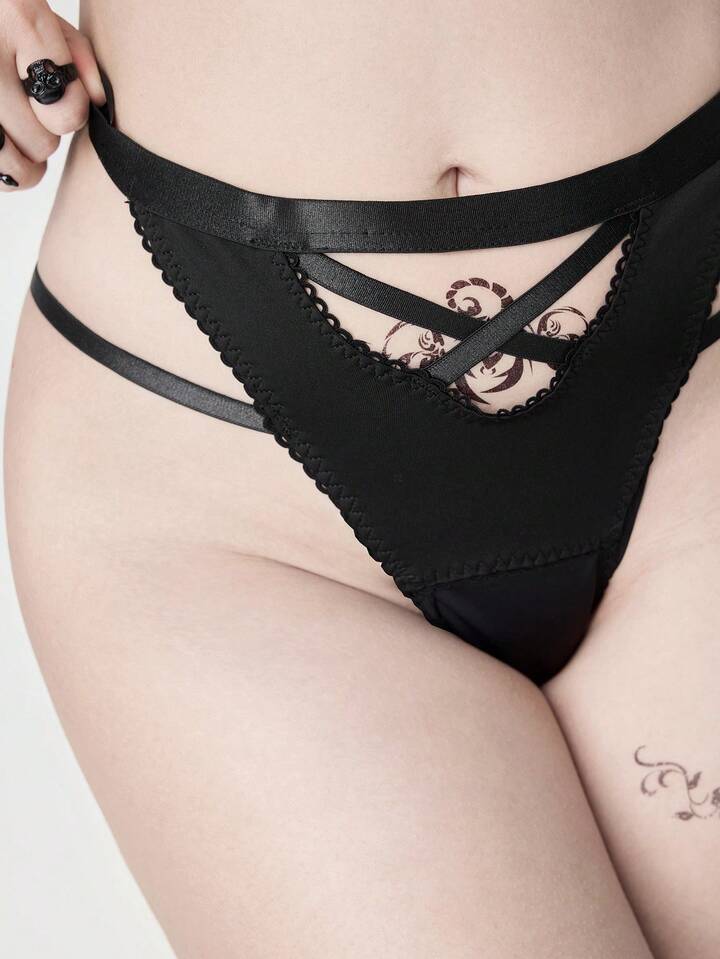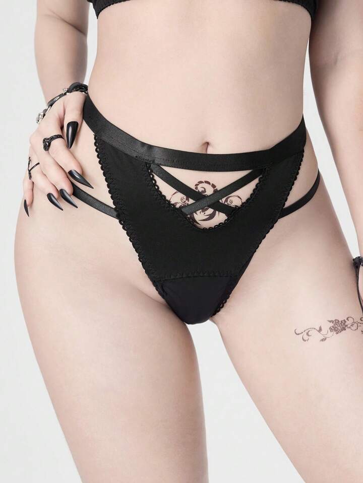 Goth Mutandine sexy con apertura, in pizzo floreale gotico, da donna