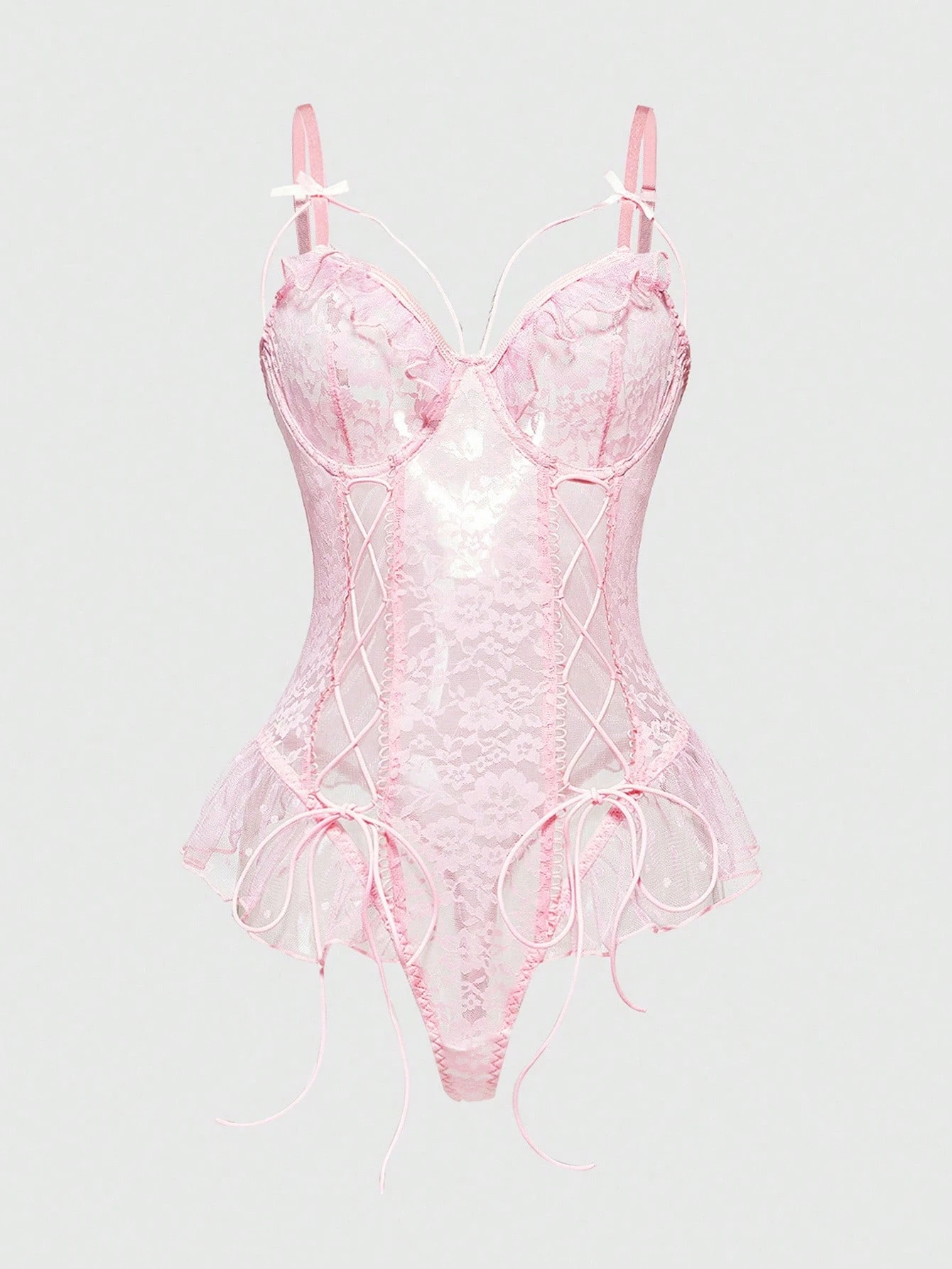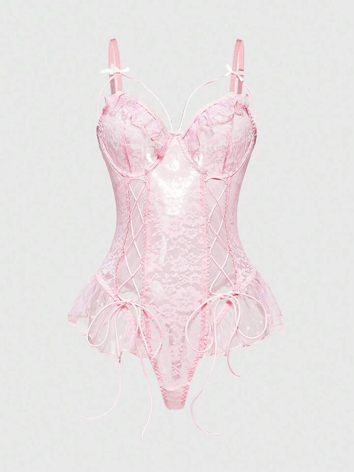 Kawaii Body sexy da donna con arricciature, scollo a cuore e lacci sul davanti