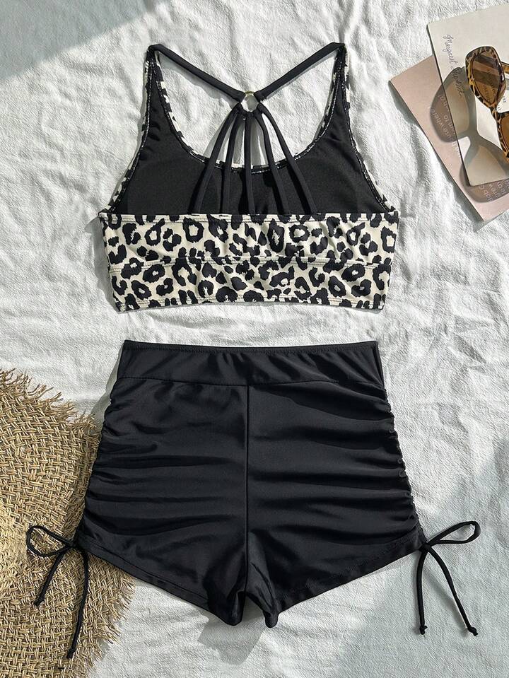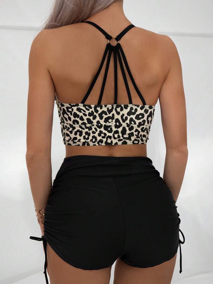 Bikini a stampa leopardata da donna, costume da bagno estivo alla moda